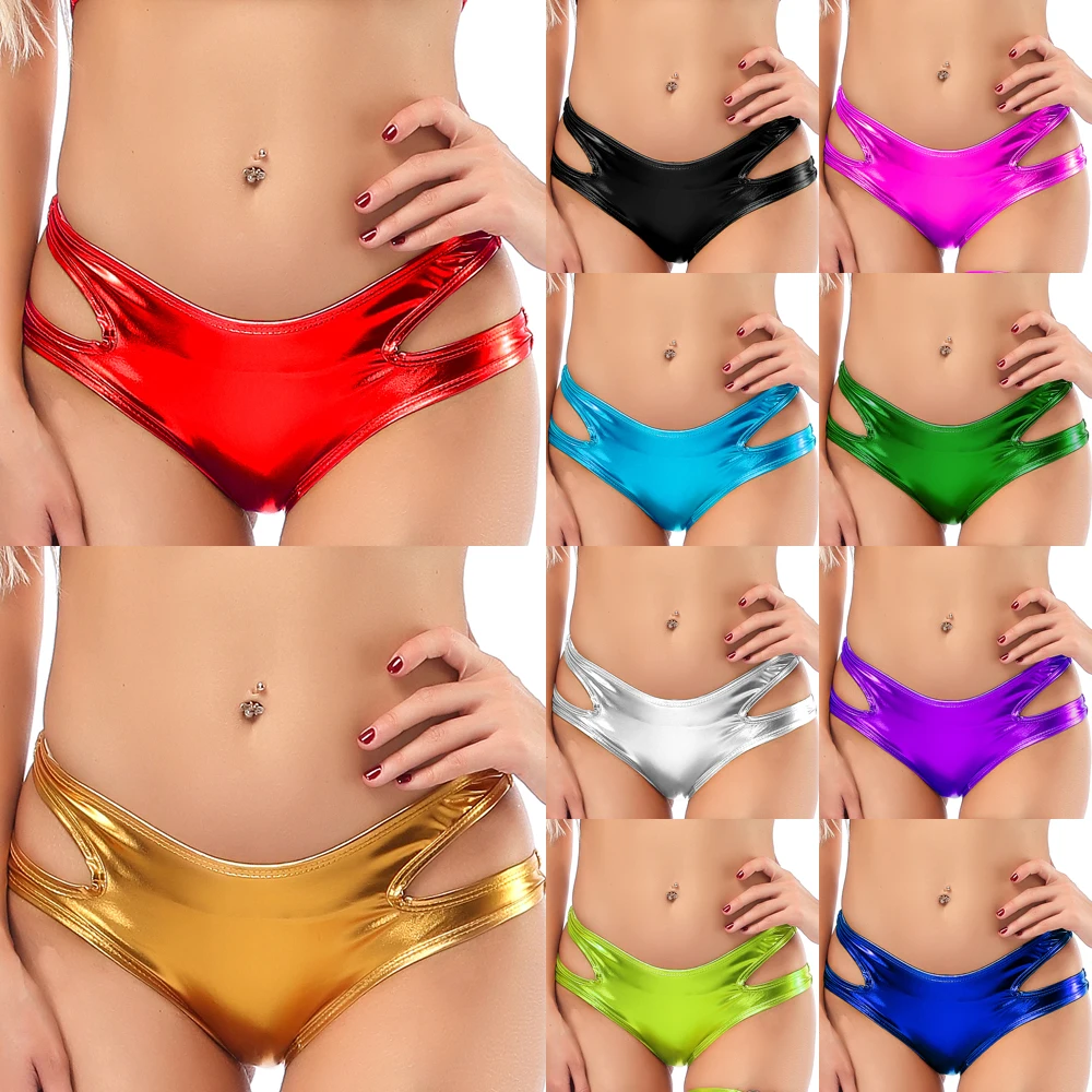 Женские блестящие металлические трусики с вырезами, брифы, Горячие ...