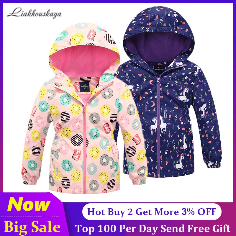 Ветровка для девочек, куртка с единорогом, пальто для девочек-подростков, флисовая верхняя одежда, тренчкоты для девочек, Корейская весенняя одежда для 3-12 лет