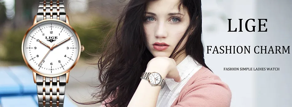 Часы наручные LIGE женские кварцевые, модные водонепроницаемые повс...