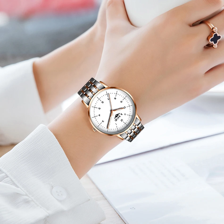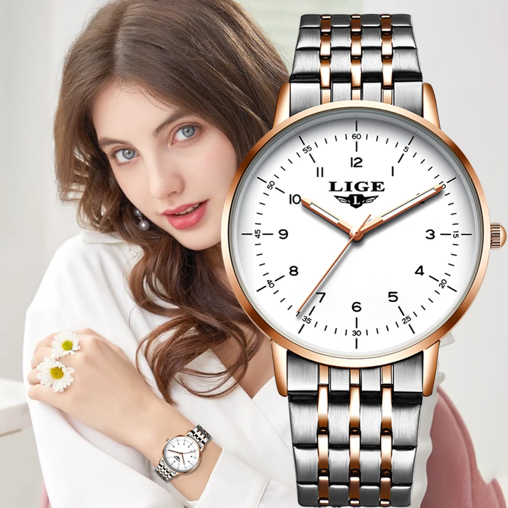 Часы наручные LIGE женские водонепроницаемые, брендовые креативные стальные, с браслетом, 2020