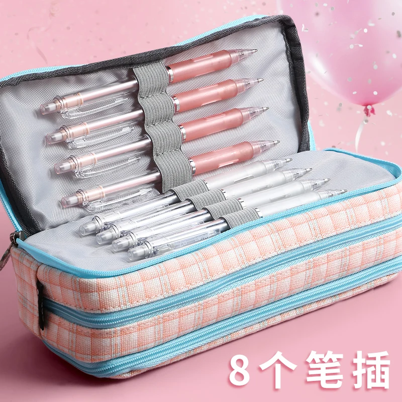Большой чехол для карандашей с застежкой-молнией, милые школьные принадлежности в клетку, чехол для карандашей для девочек-подростков и мальчиков, сумка для школьников