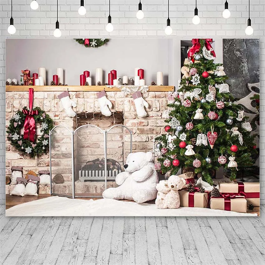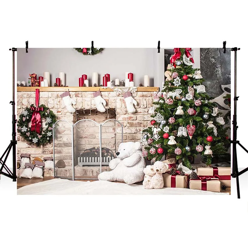 Avezano Рождественская елка фоны зимний камин перчатки омела венок Декор фотографии фоны фотостудия фотозона