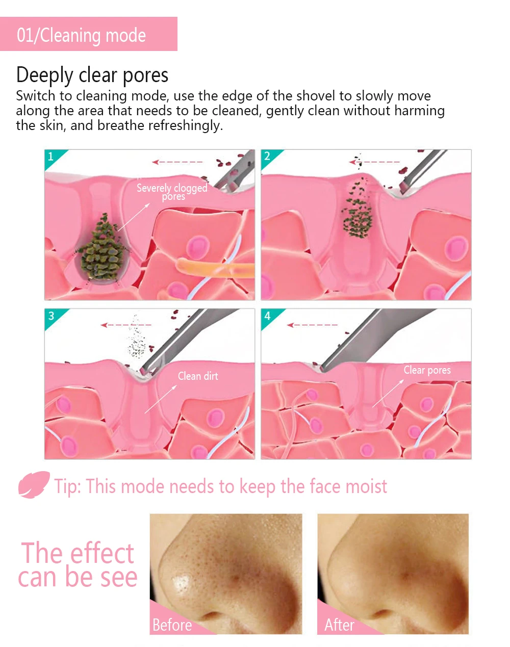 Ультразвуковой скребок для кожи, Глубокая очистка, скребок для лица, ионный экстрактор для пилинга кожи, очиститель пор, удаление акне, машина для подтяжки лица