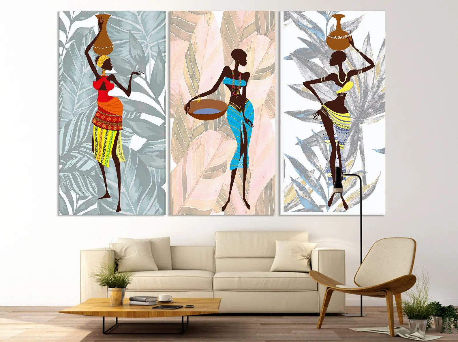 Настенная картина в африканском стиле для женщин, холст, плакаты, 3 предмета, украшение для дома, Модульная картина, HD печать, рамка для спальни