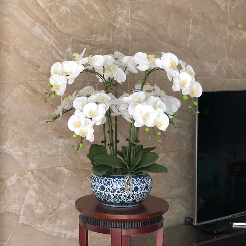 Большие искусственные орхидеи полиуретан с эффектом реального прикосновения ручной набор искусственное стекло большой искусственная Цветочная композиция без вазы Украшение Дома