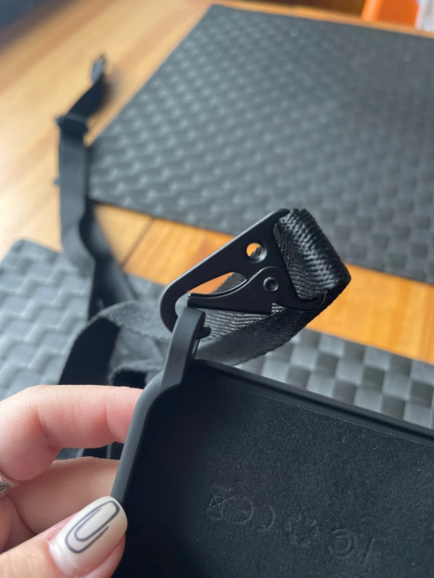 Получила чехол, но карабины совсем не внушают доверия. Их очень легко сдвинуть, чтобы они открылись и открепились, правый так вообще слабенький. не знаю как теперь носить его по назначению с телефоном :( с продавцом не общалась, доставили за 7 дней!
