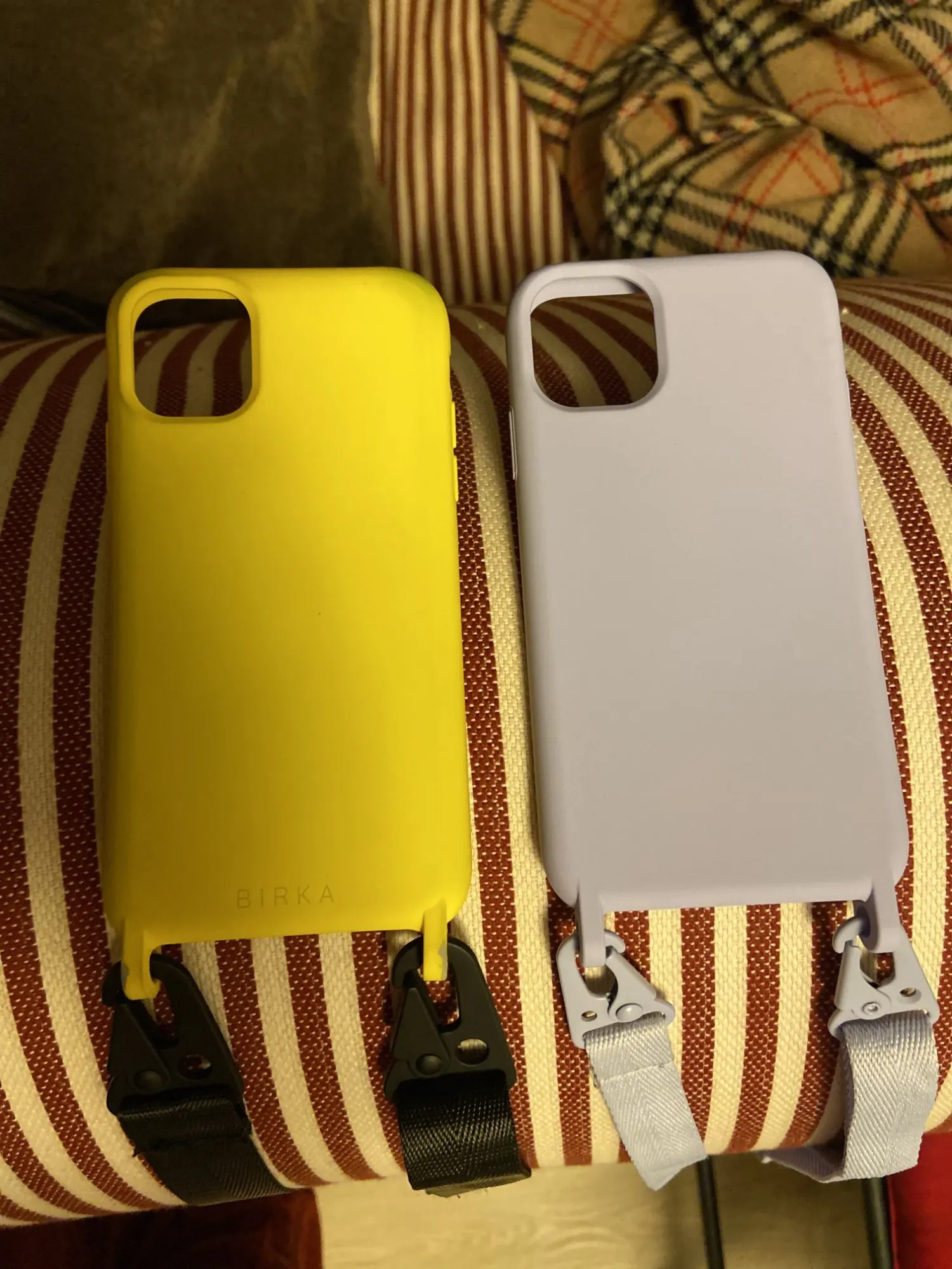купила чехол, чтобы сравнить с таким же чехлом от российского бренда. на фото сиреневый чехол с алика, желтый из бирки. сами чехлы абсолютно одинаковые, разве что у чехла с алиэкспресса есть небольшие пузыри, а вот ремешки и гарнитура различаются, у чехла с алиэкспресса тоньше ремешок и легче крепления, но все равно надёжные. думаю при использовании особых различий не увижу