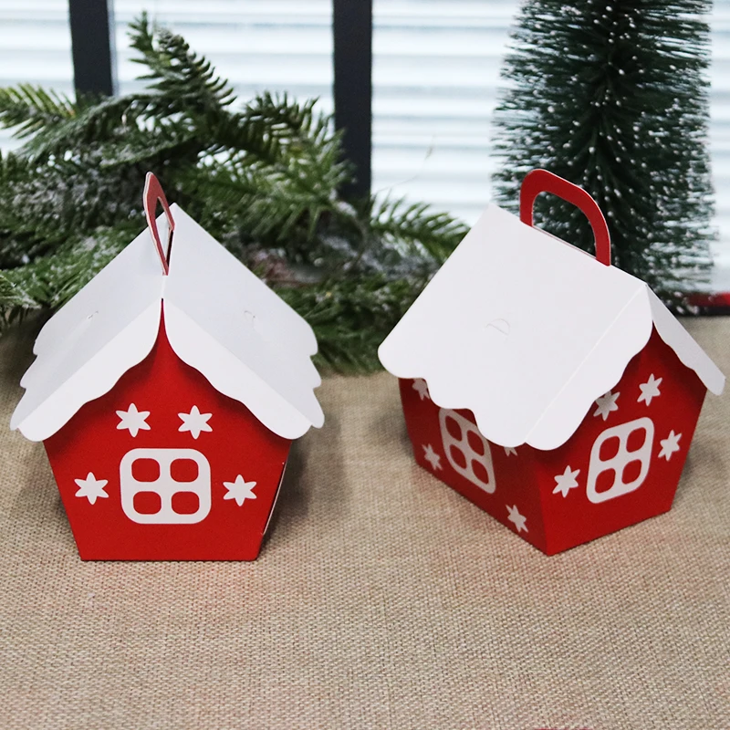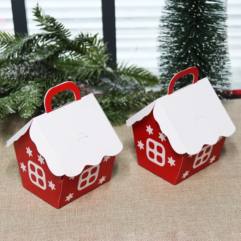 Рождественские подарочные коробки из крафтовой бумаги, в форме доми...