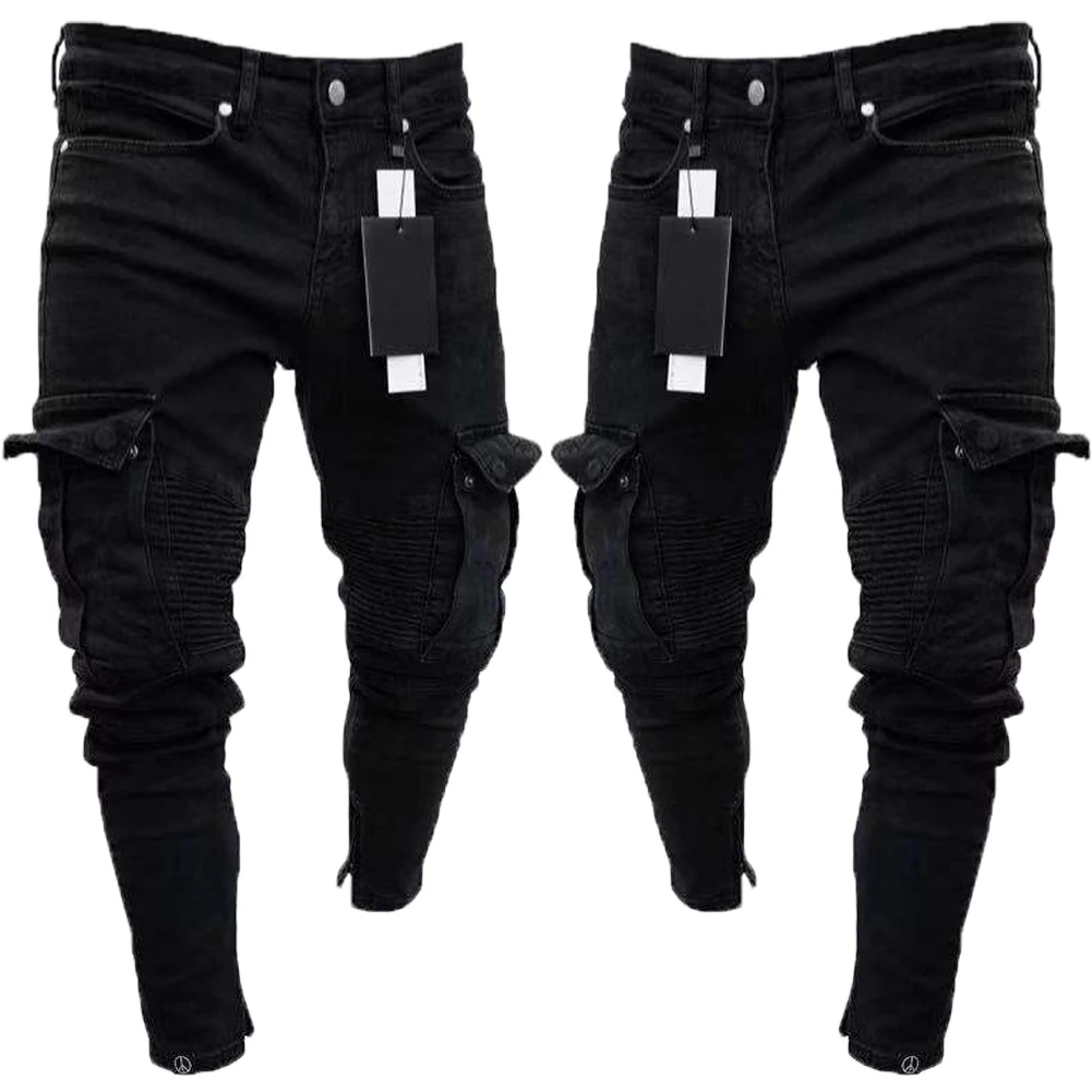 Мужские байкерские рваные длинные джинсовые брюки, узкие джинсовые брюки, рваные эластичные-черные брюки
