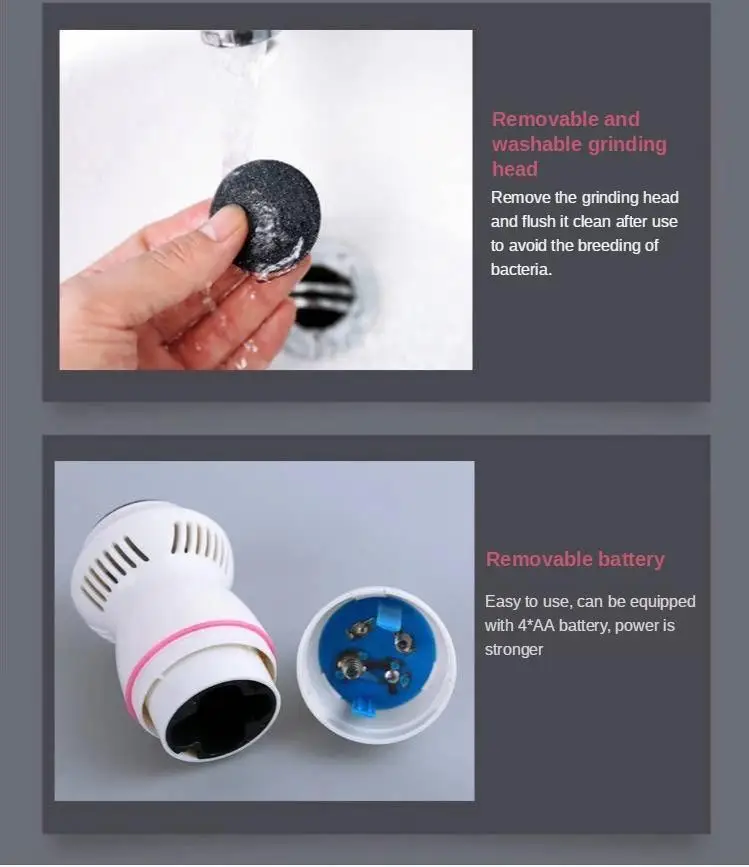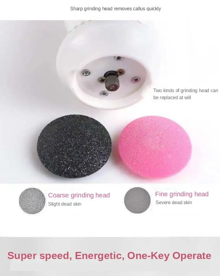 Электрическая шлифовальная машина для ног, инструмент для педикюра с 2 шлифовальными головками для удаления омертвевшей кожи и мозолей