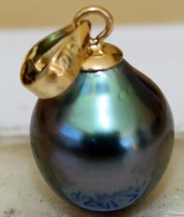 Подлинный 10x12 мм Таитянский Павлин зеленый жемчуг кулон