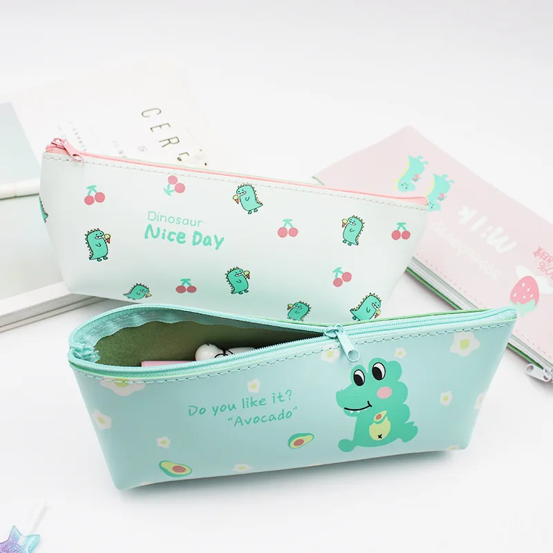 Милый мультяшный пенал с динозавром, простой водонепроницаемый канцелярский мешок, школьный пенал для девочек