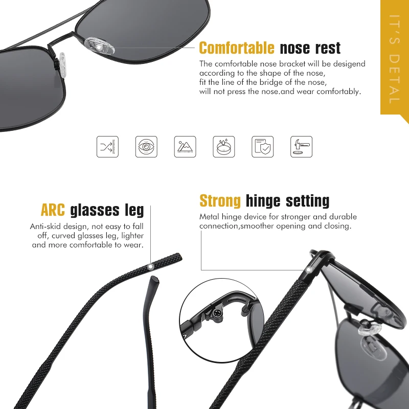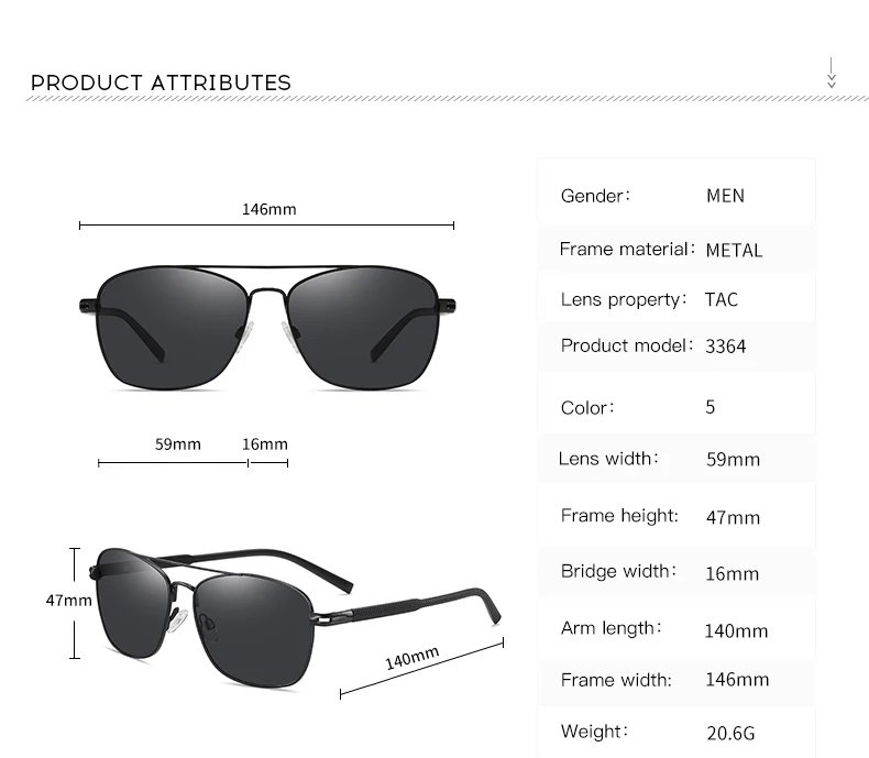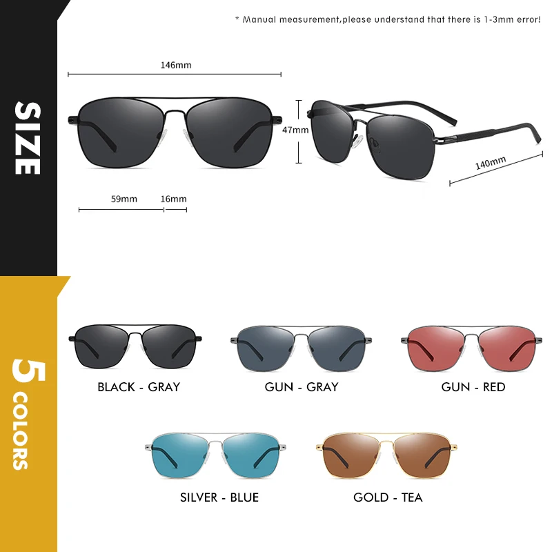 Мужские и женские квадратные поляризованные солнцезащитные очки LIO...