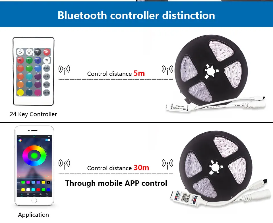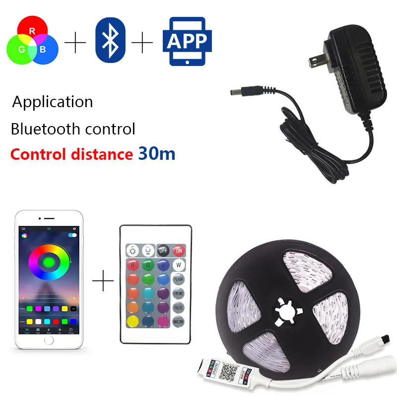 Светодиодная лента 5 м, 10 м, 15 м, 20 м, RGB, не водонепроницаемая, SMD 5050, 12 В, диод rgb, гибкая лента, контроллер Bluetooth + переходник