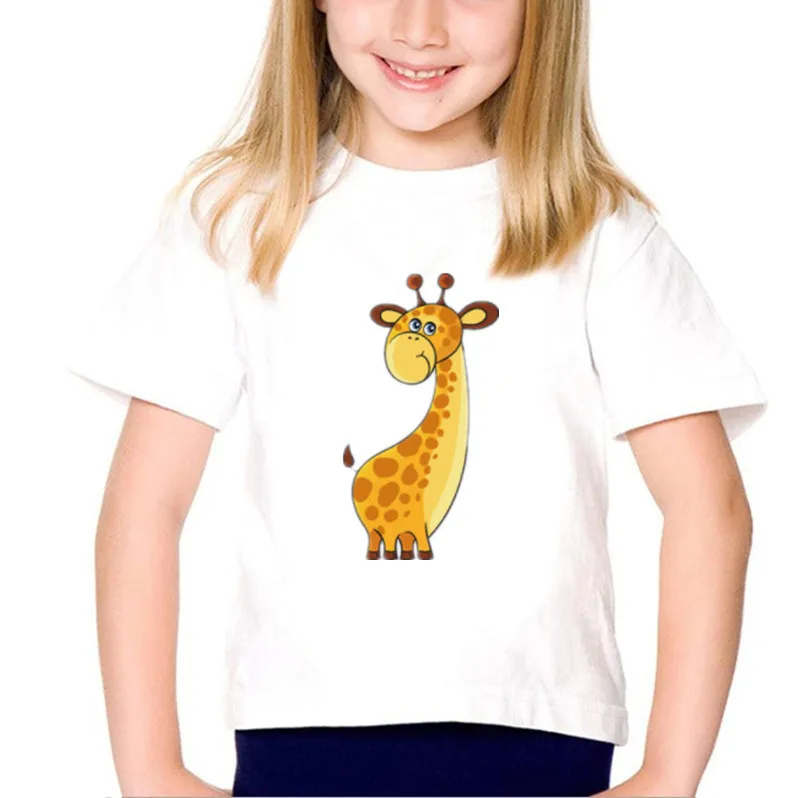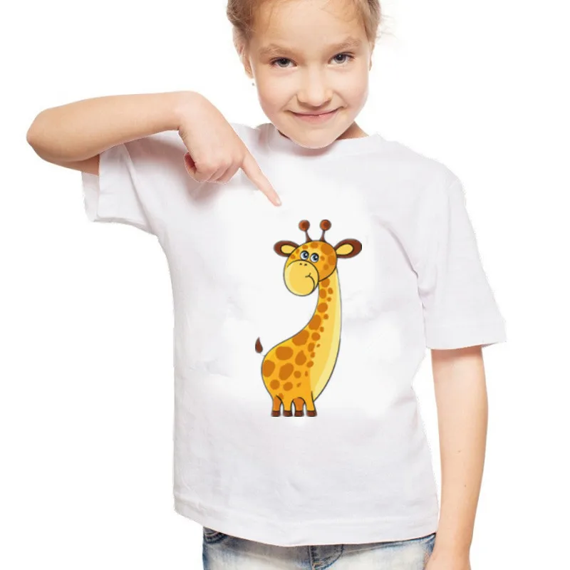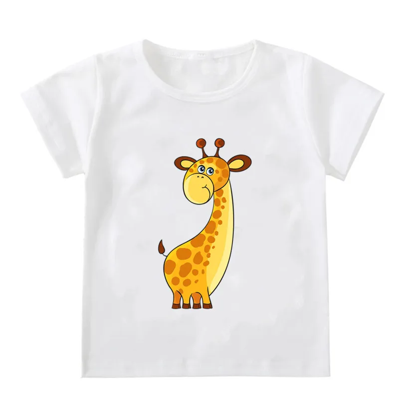 Летняя модная футболка для мальчиков и девочек Милая футболка с рисунком жирафа детская одежда с короткими рукавами, футболки для От 1 до 12 лет