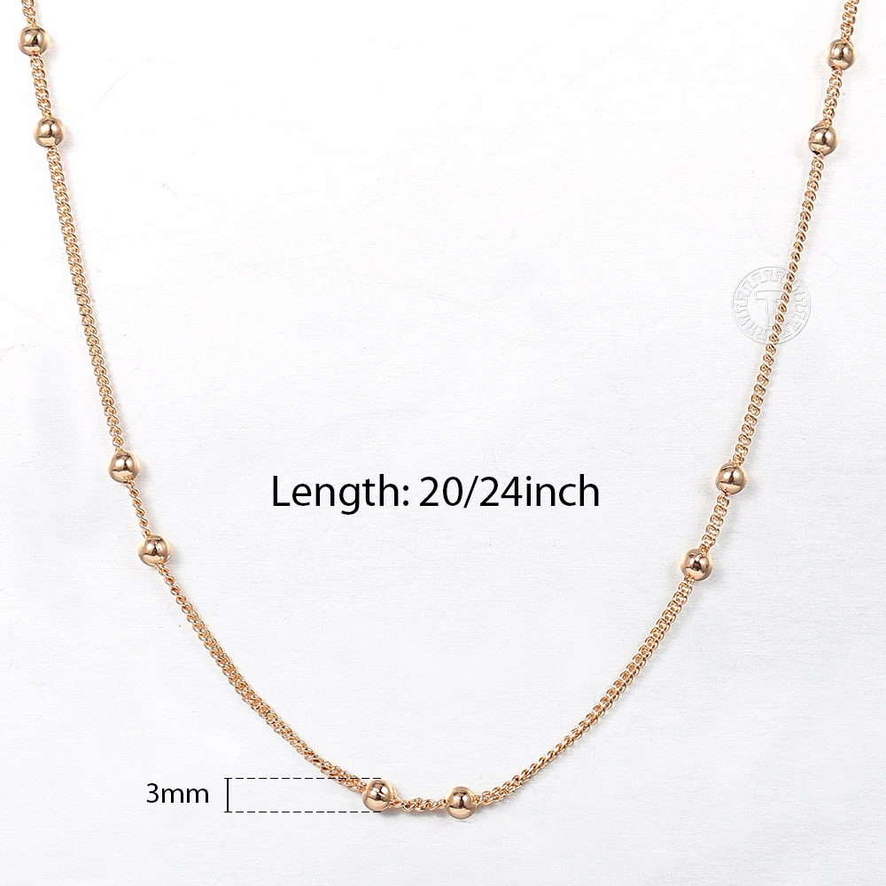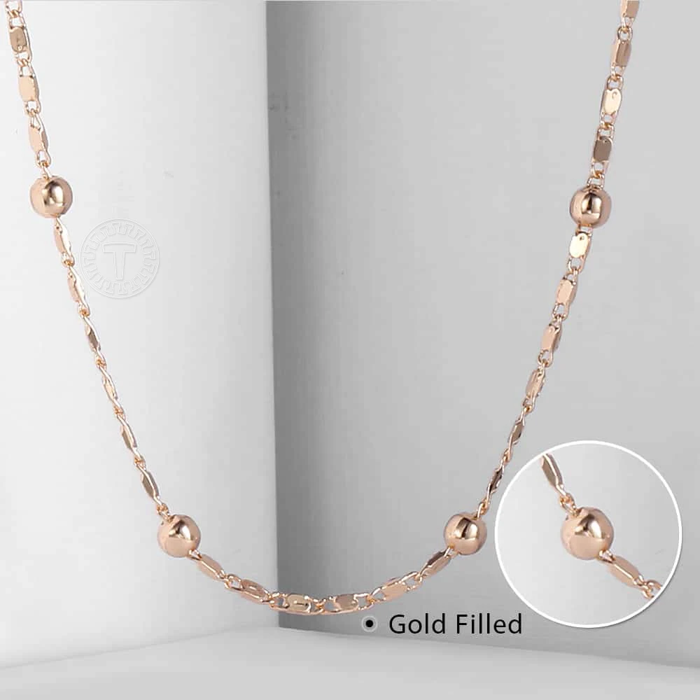 Цепочка женская из розового золота 585 пробы, с бусинами 2 мм, CN18
