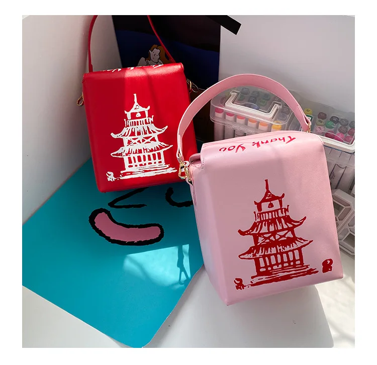 Китайская коробка на вынос, Сумка с принтом башни для женщин, новин...