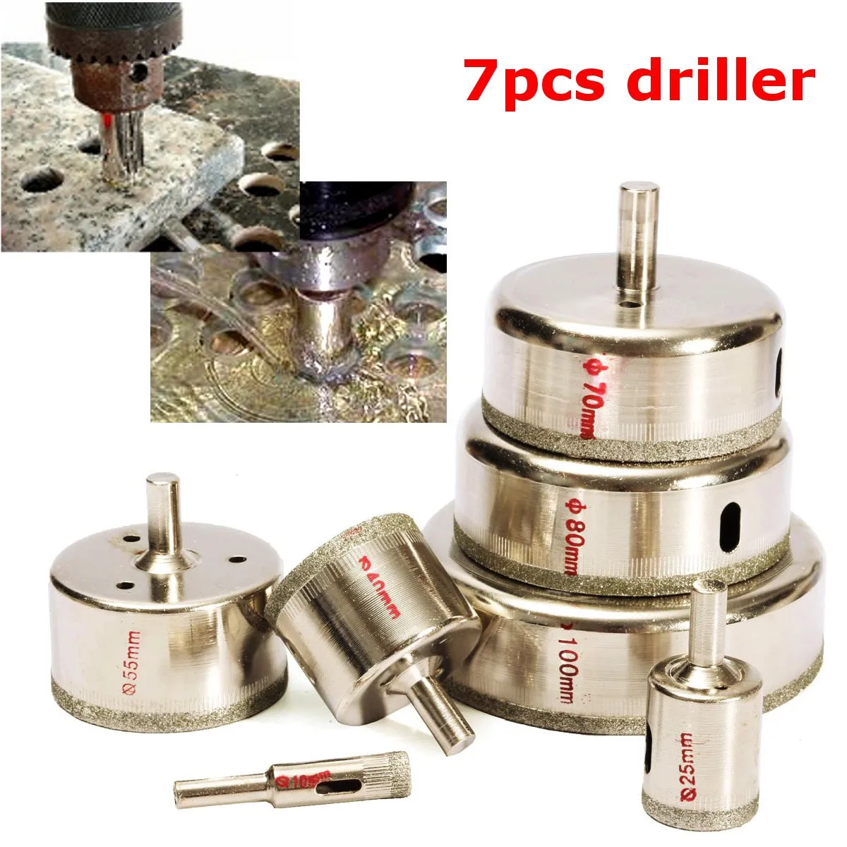 Набор сверл по керамике, стеклу, мрамору, 102540557085100 мм, 7 шт.