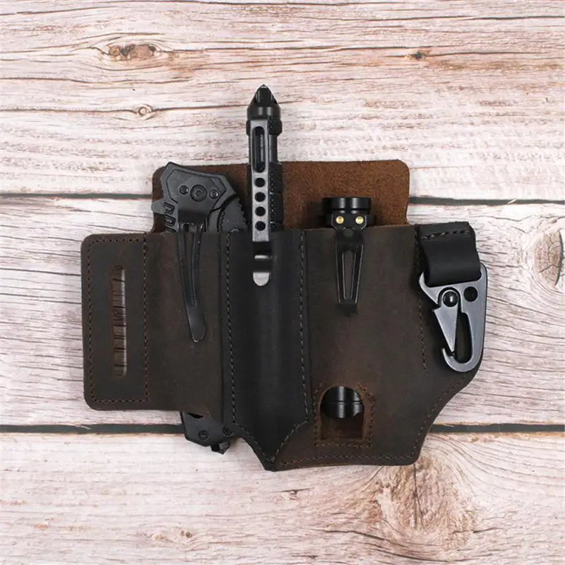 Кожаный футляр для инструментов, карманный органайзер для повседневного использования с держателем для ключей, для ремня и фонарика, аксессуары для кемпинга и улицы