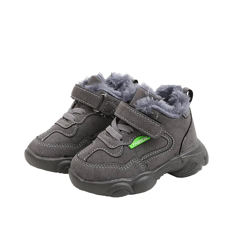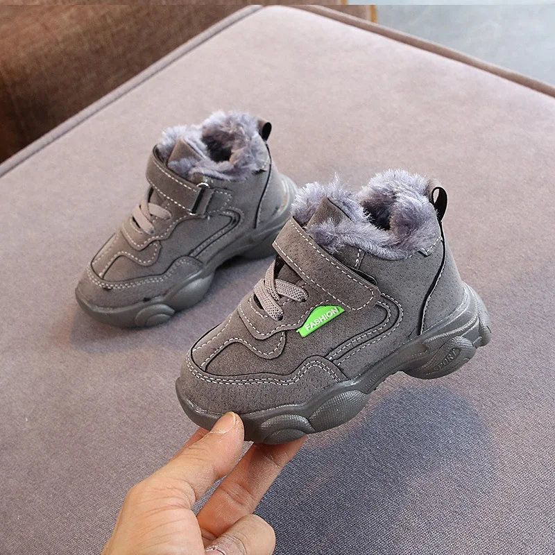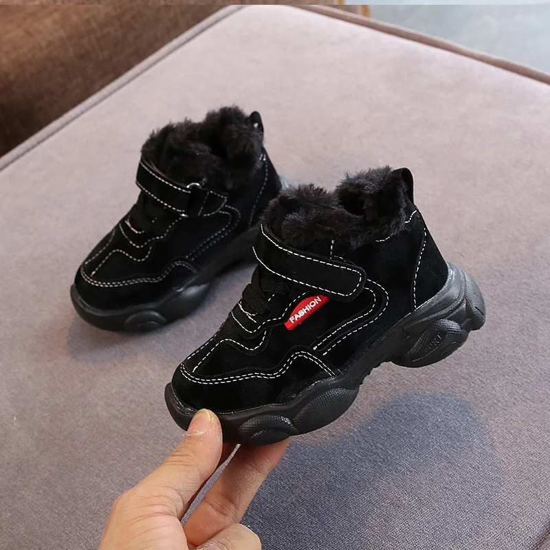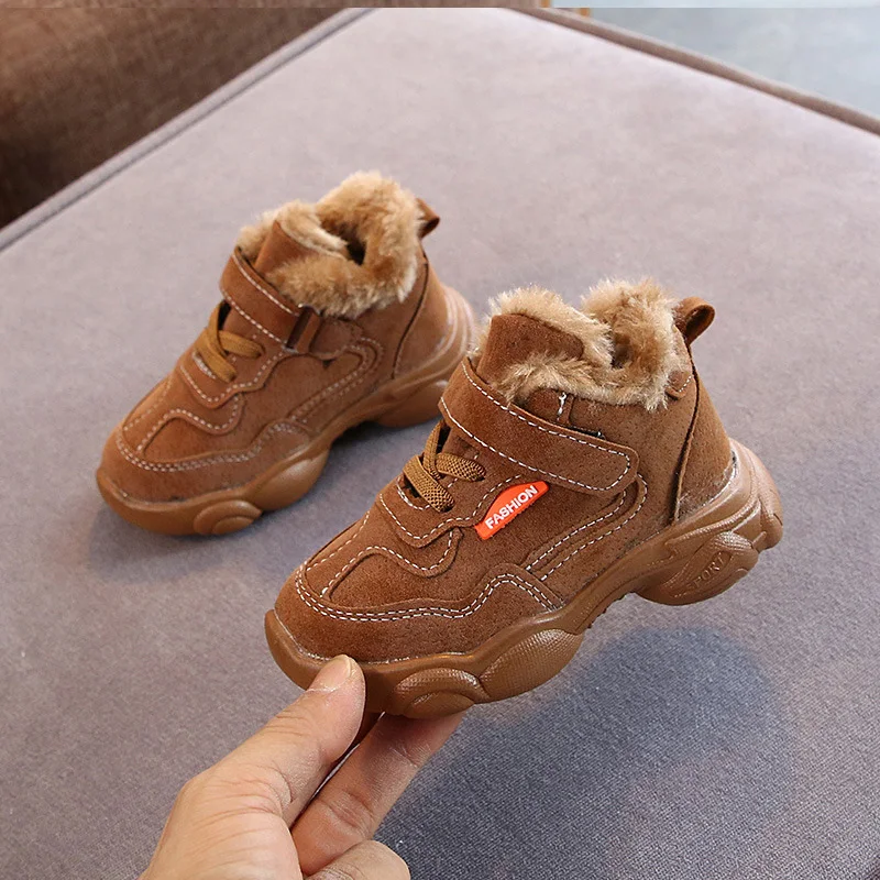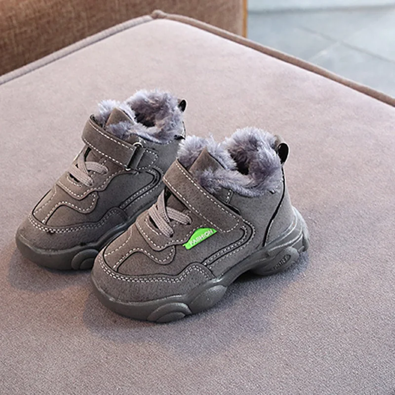 Детская обувь, детские меховые ботинки для мальчиков, кожаные ботинки из флока, кроссовки для девочек, Зимние Теплые ботильоны на толстой плюшевой подкладке, повседневная обувь