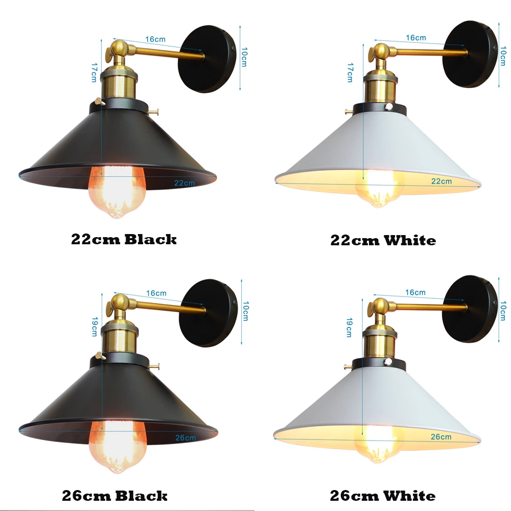 Категория: настенные светильникиКоличество: 1 шт.Материал: железоСветильник щения: Промышленный, винтажныйЦвет лампы: черный/белыйТип: 220 мм/260 ммПатрон лампы: E27 (лампы в комплект не входят)Тип источника светильник: лампа Эдисона, светодиодная лампа, лампа накаливанияРазмер основания потолка: диаметр10смРазмеры абажура: 220 мм/260 ммДлина трубки: около 16 смРегулируемый угол наклона: 180 °Площадь облучения: 5 м2-10 м2Напряжение: 110-240 ВПитание: переменный токРазмер: как показано на картинкеМеста применения: гостиная/спальня/кабинет/ресторан/гостинаяПримечание: лампа в комплект не входит, ее нужно купить самостоятельно!Посылка входит:1 настенный светильник (без лампы)