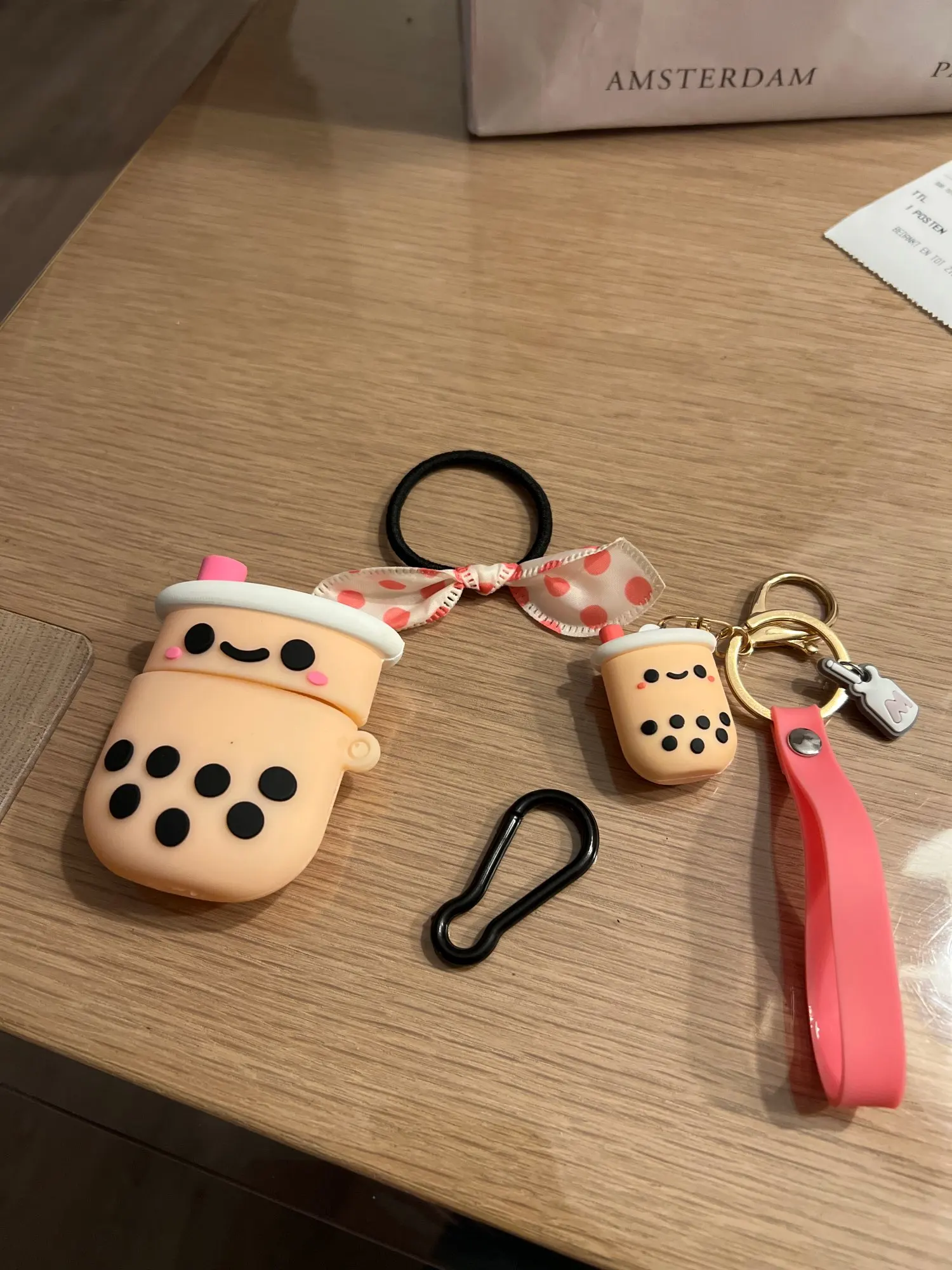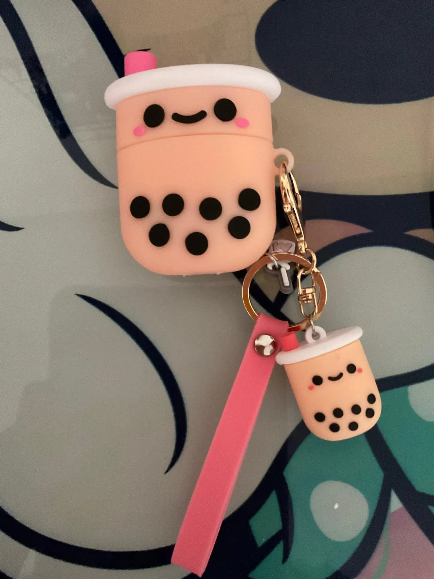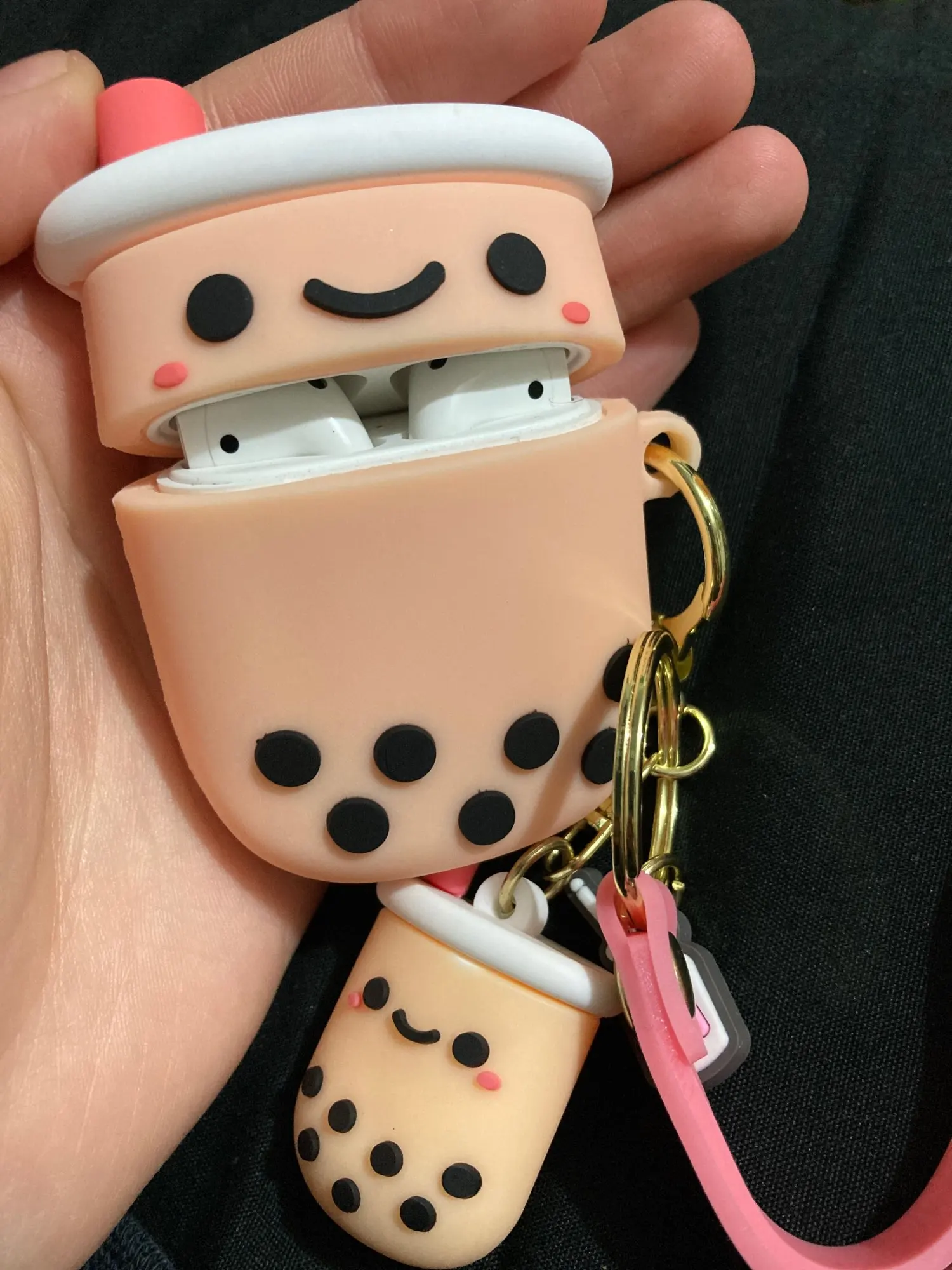 Милый силиконовый чехол для наушников Boba Bubble Milk Tea для AirPods Pro 1 2, беспроводная bluetooth-гарнитура, аксессуары, жемчужный брелок