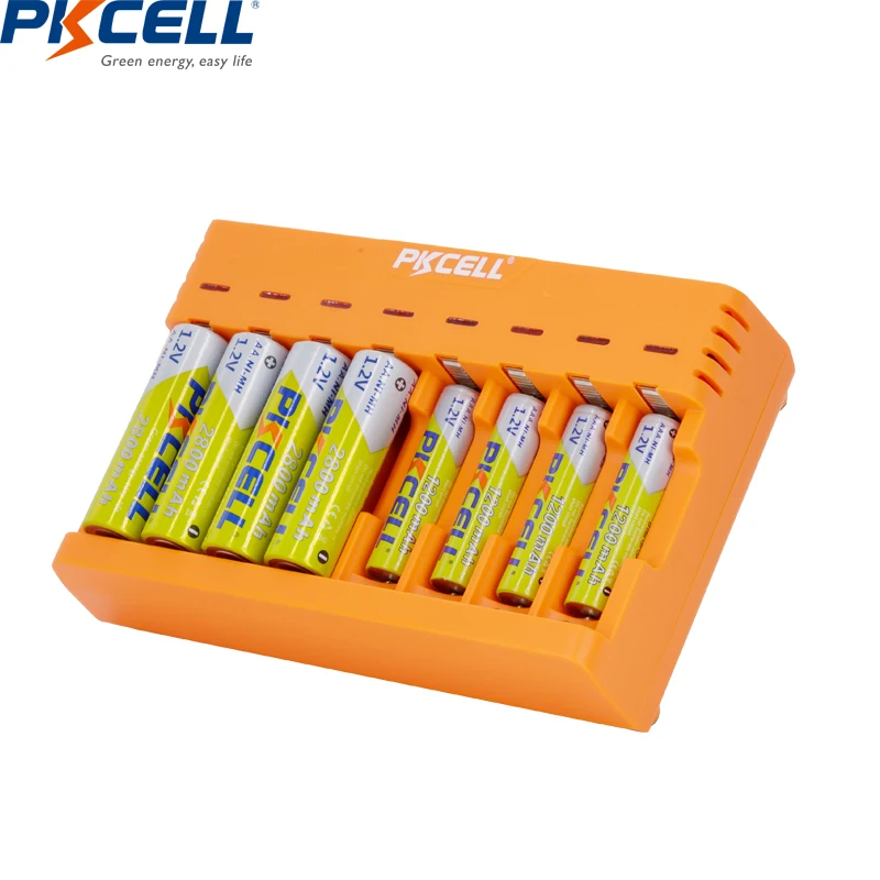 8 шт. PKCELL 1,2 в AAA 1000 мАч никель-металл-гидридного Перезаряжаемые Батарея батарейки ААА с Батарея Зарядное устройство 1-8Slots никель-металл-гидридногогидридных и никель-кадмиевых типов аккумуляторов AAAAA Зарядное устройство