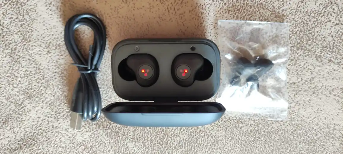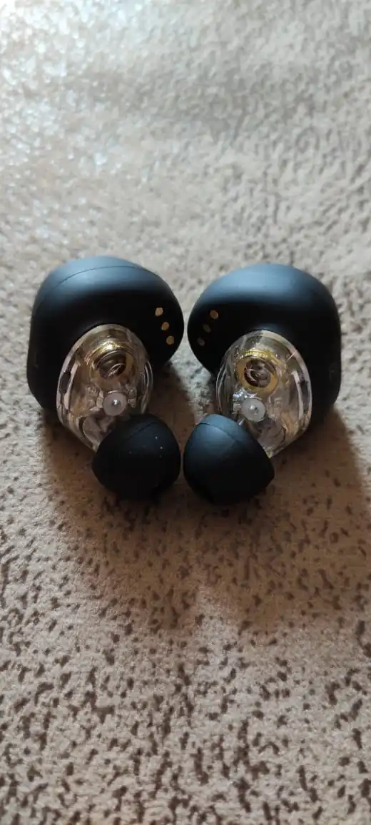 Наушники очень классные! Кейс очень приятный-Soft-touch. Как говорится, возьмешь в руки маешь вещь) Выглядит дорого-богато. Думал будет большой, но довольно компактный. Сами наушники, учитывая то, что у них два драйвера тоже довольно компактны. Bluetooth соединение отличное, стабильное-на открытом пространстве бьёт все рекорды-более 100 метров. Звук чистый и громкий-присутствуют все частоты, не перебивают друг друга. Все частоты отлично сбалансированы. Бас хороший-плюс добавляется подбором Амбушю́р, чем плотнее к уху, тем баса больше. Получил большой кайф от прослушивания различных жанров-наушники всеядные. И вокал и басовые композиции и классическую музыку будете слушать с удовольствием. Не забудьте прибавить звук на самих наушниках-двойным тапом по правому наушнику. Качество, как материалов, сборки так и звука на очень высоком уровне-однозначно рекомендую наушники и продавца. Большое спасибо продавцу за качественный товар! Успехов вам в вашем бизнесе!