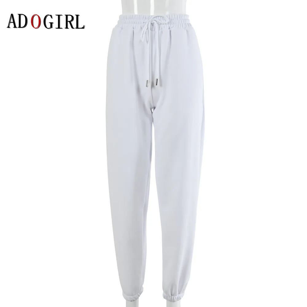Adogirl повседневные однотонные женские брюки с высокой талией для бега Штаны уличная длинные брюки для девочек эластичные штаны черного цвета, размера плюс