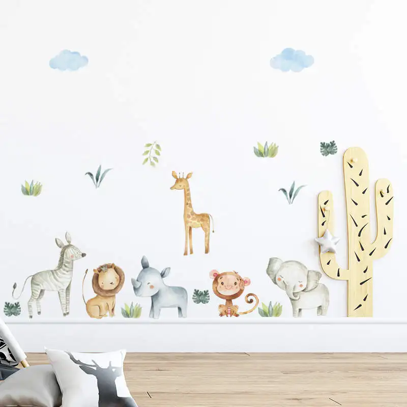 Настенные Стикеры из ПВХ с акварельными рисунками сафари и животных...