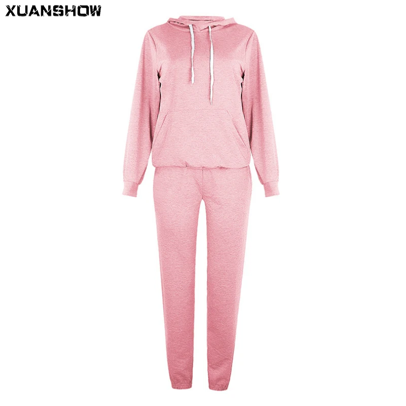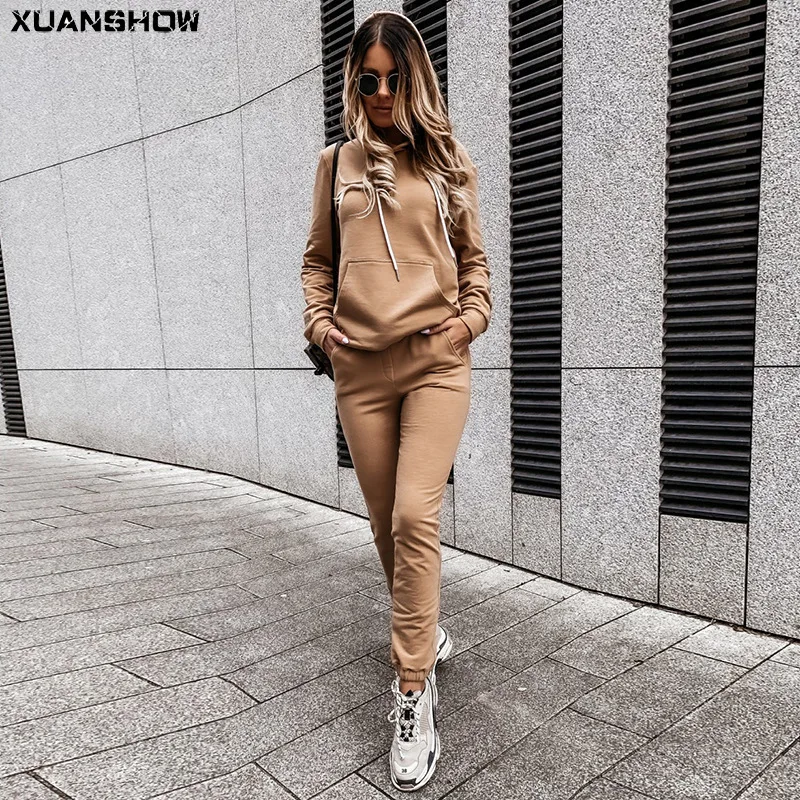 XUANSHOWосенний женский модный комплект из 2 предметов, спортивный костюм, толстовки с длинными рукавами + штаны, спортивные костюмы, спортивная одежда, S-XXL