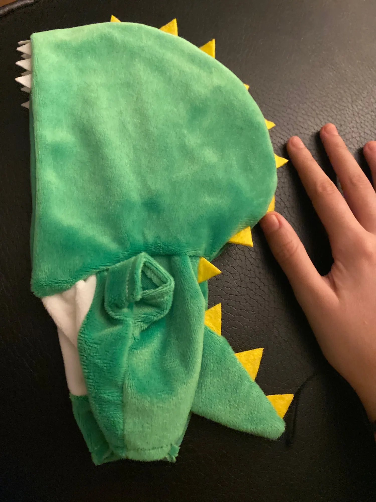 Костюм не открывается в любом месте, с которым он не подходит. И очень большая шляпа по сравнению с маленьким костюмом, как будто это другой размер.