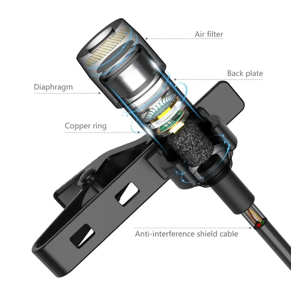 Конденсаторный мини-микрофон для студийной речи, адаптер Type-c, 3,5 мм, нагрудный микрофон на зажиме, для ПК, настольного компьютера, ноутбука
