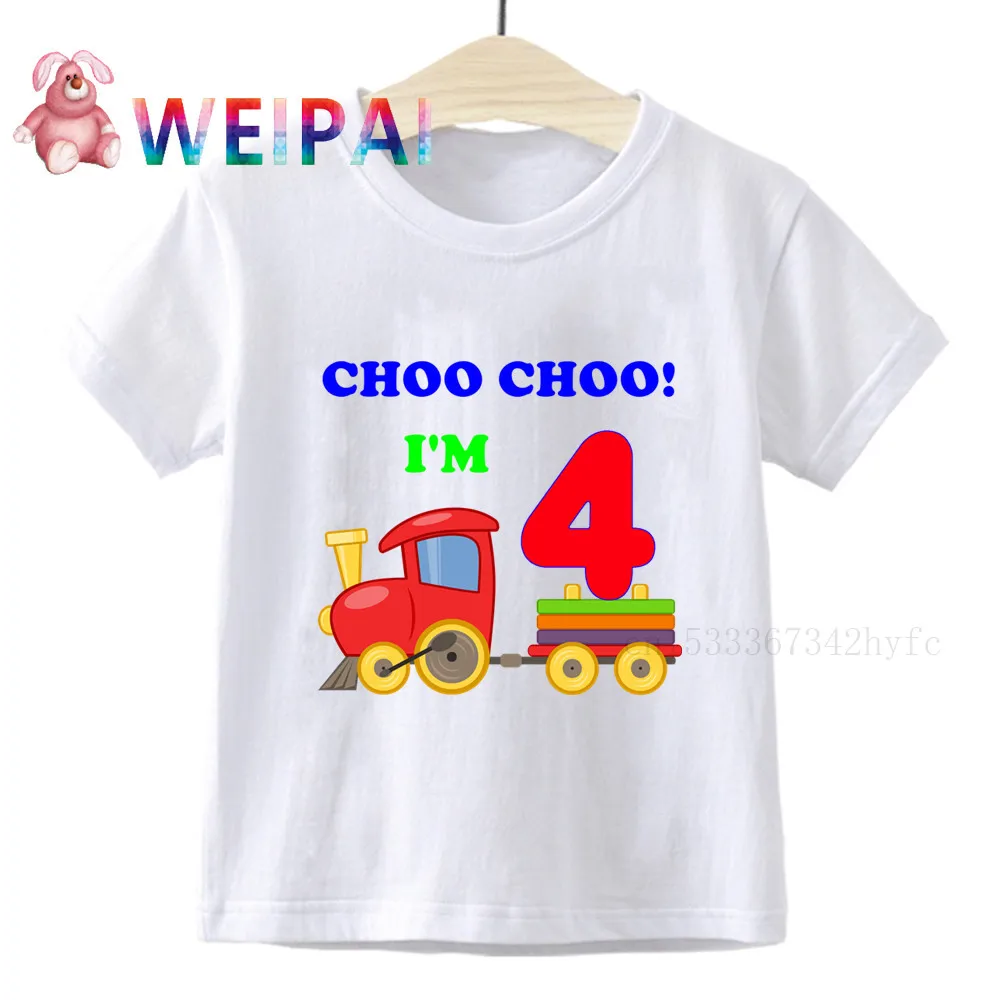 Мальчика поезд для детей 1-9 на день рождения; Юбка-американка с принтом детская футболка Чу и надписью I'm 2 футболки для мальчиков и девочек Смешные подарочные футболки подарок для всей семьи в одинаковом стиле
