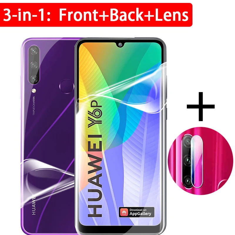 3-в-1 на Y6P Y6S Защитная Гидрогелевая пленка для задней панели экрана объектива камеры для Huawei Y6p Y6s 2020 Y 6 p y6 s 6 p 6 s Защитная пленка не стекло
