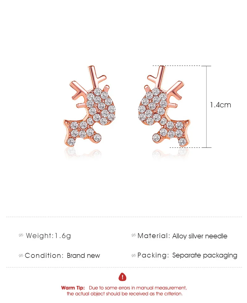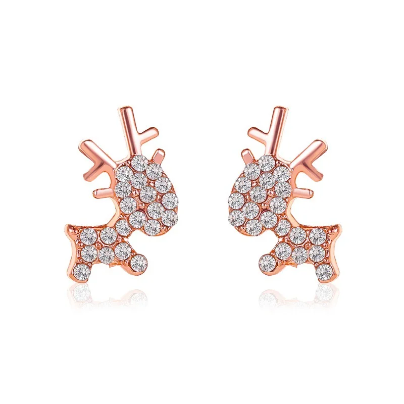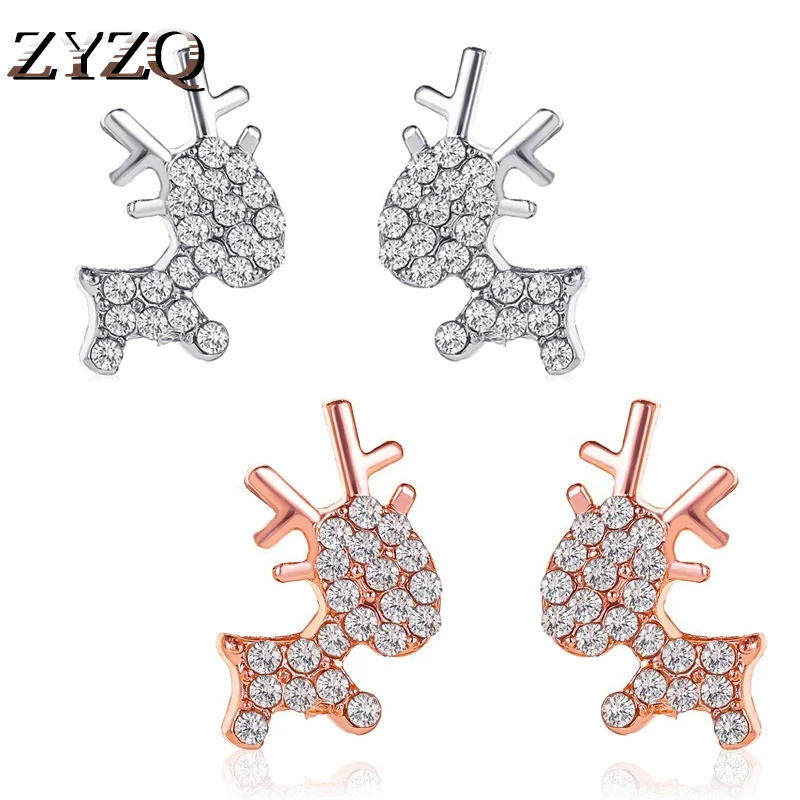 ZYZQ Новое поступление изысканный Циркон лося гвоздики с оленями женские серьги с розой для девочек; Цвета: золотистый, подарок на Новый год, серьги, модное ювелирное изделие