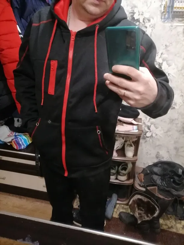 Костюм на 3. Синтетика, мешковат, не такой плотный как кажется, на мои 176 см/85 кг - 2XL оказался велик (мой 48-50). Резинки на манжетах и на штанах слабые, будто их и нет. На кофте верёвки без наконечников, пришлось из термоусадки красной делать. Молнии на фото лучше чем в реале, не прорезинены. На на грудном кармане до конца не застегивается на 1-2 зуба. Тёплый, но не для зимы. За такую цену можно было бы и лучше качество. Но доставка быстрая, за 10 дней получил. С продавцом не общался.