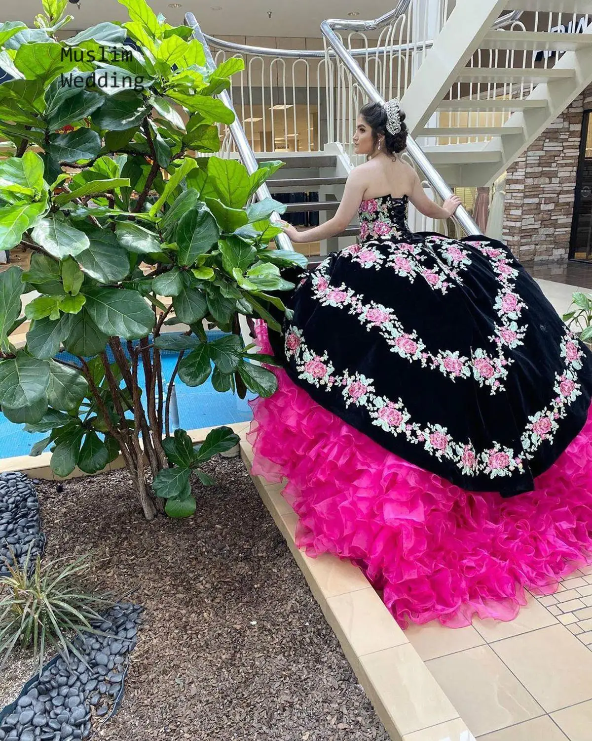 Черное бальное платье, мексиканское платье Quinceanera, винтажное м...