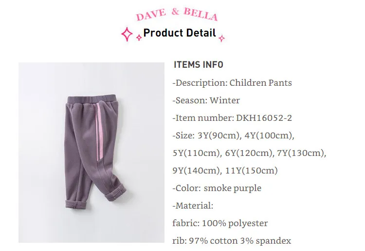 DKH16052-2, dave bella, зимние От 3 до 11 лет, модные штаны в полоску для девочек, эксклюзивные повседневные длинные штаны для детей