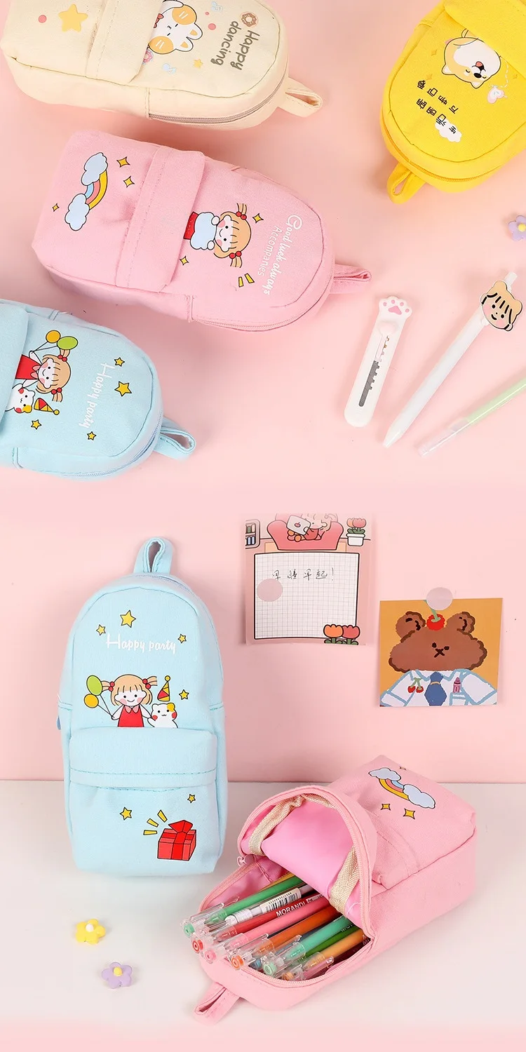 Чехол для Сумочка для ручек и карандашей Happy вечерние, мини-школьный портфель с мультяшным медведем, Кроликом, девочкой, сумка для хранения танцев, Канцтовары, школьные принадлежности, A6323