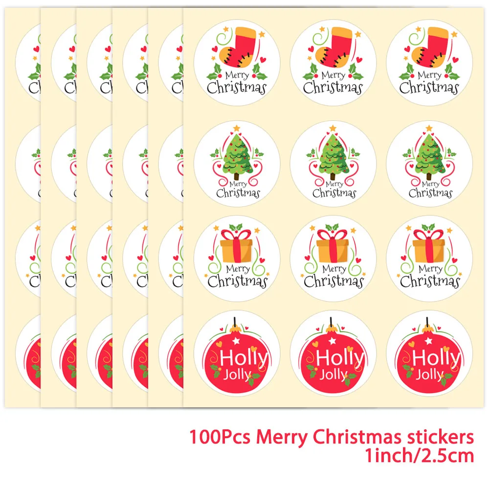Наклейки на Рождество, рождественские, подарочные, бумажные, этикетки для пакетов, 100-500 шт.