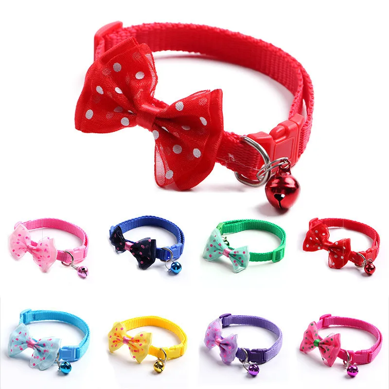 Ошейник с бантом для кошек и собак, Регулируемый аксессуар для дома...