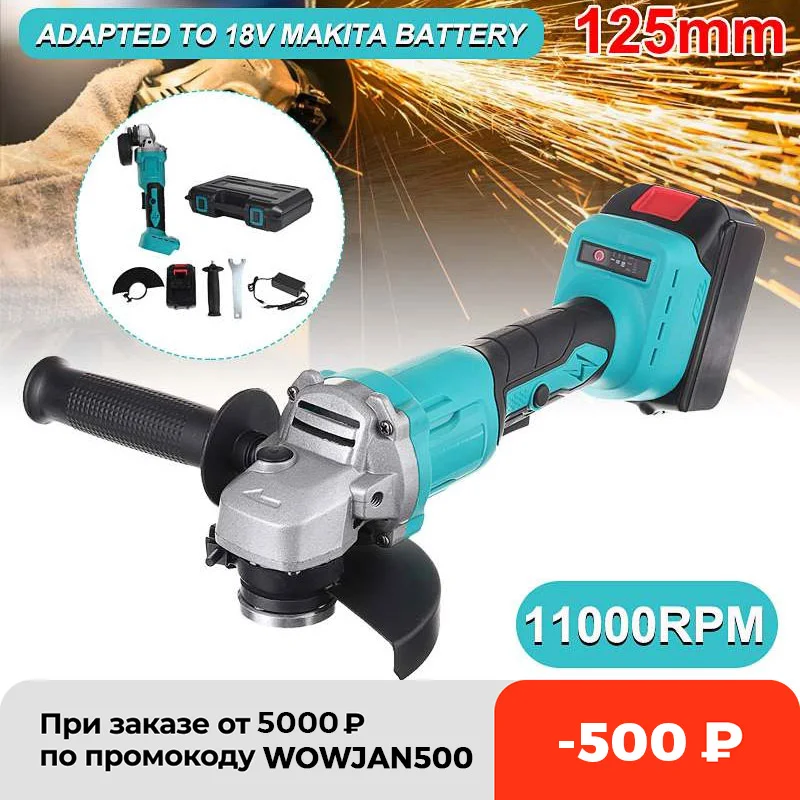 Бесщеточная электрическая угловая шлифовальная машина, 125 мм, беспроводной Электроинструмент сделай сам для деревообработки с аккумулятором Makita 18 в