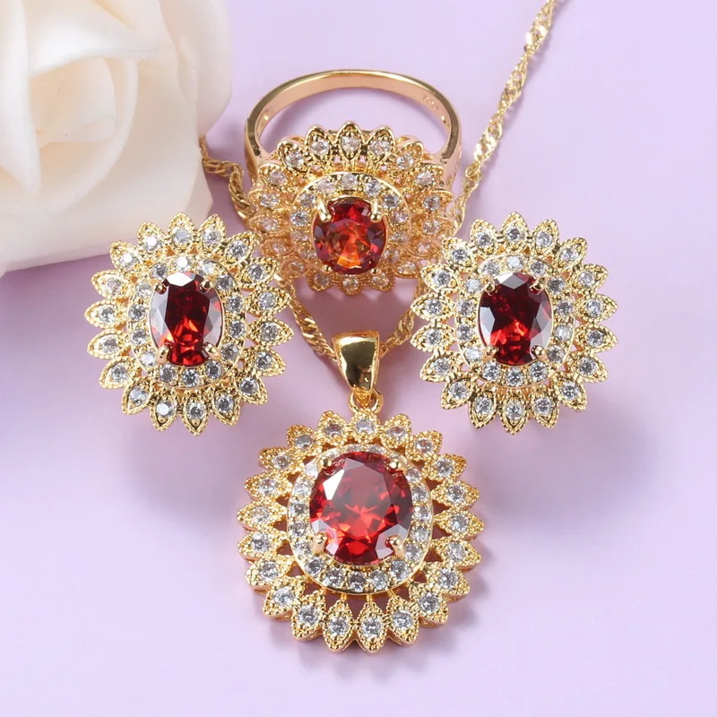 Комплекты ювелирных украшений, свадебные комплекты из красного гран...