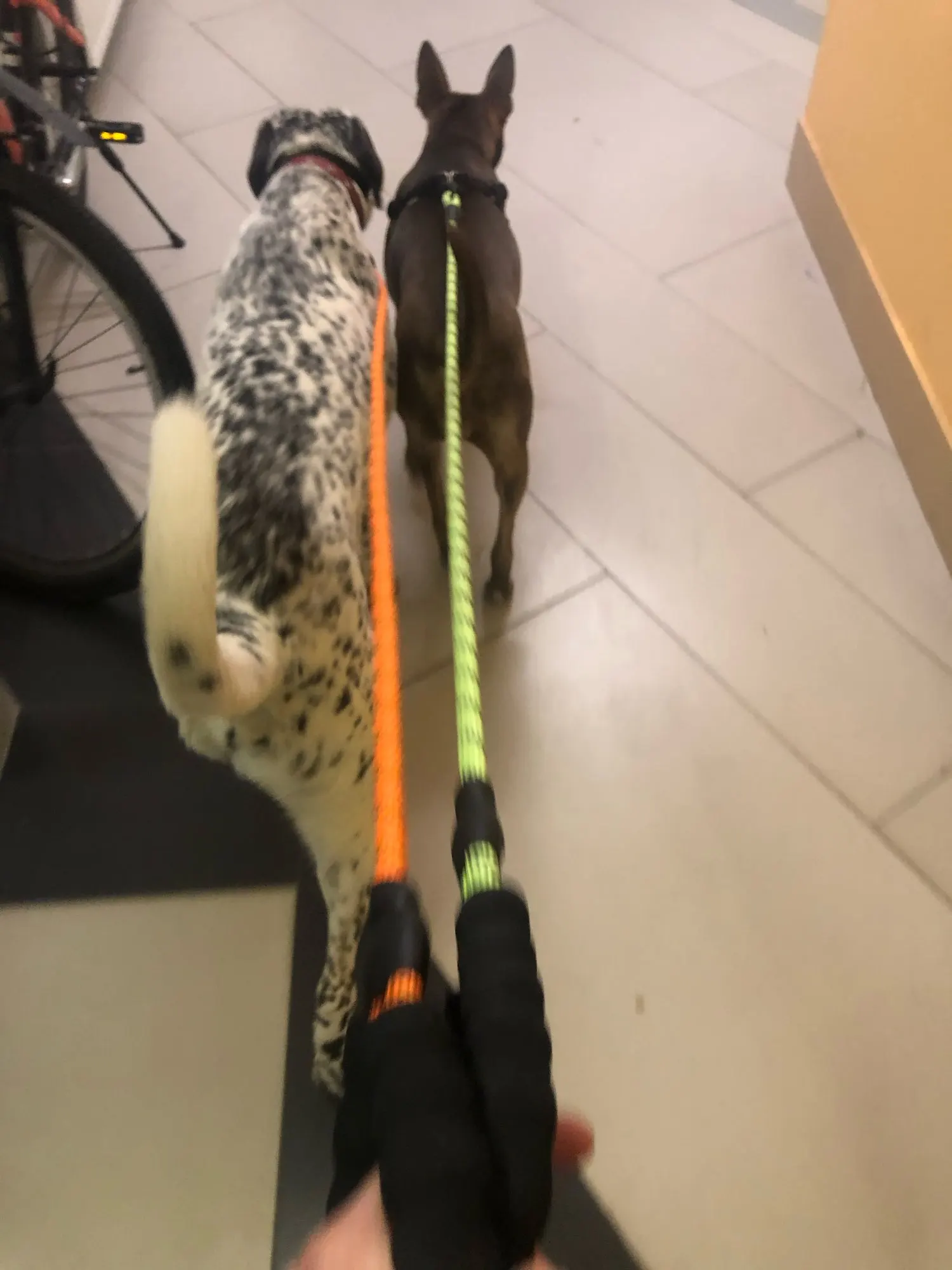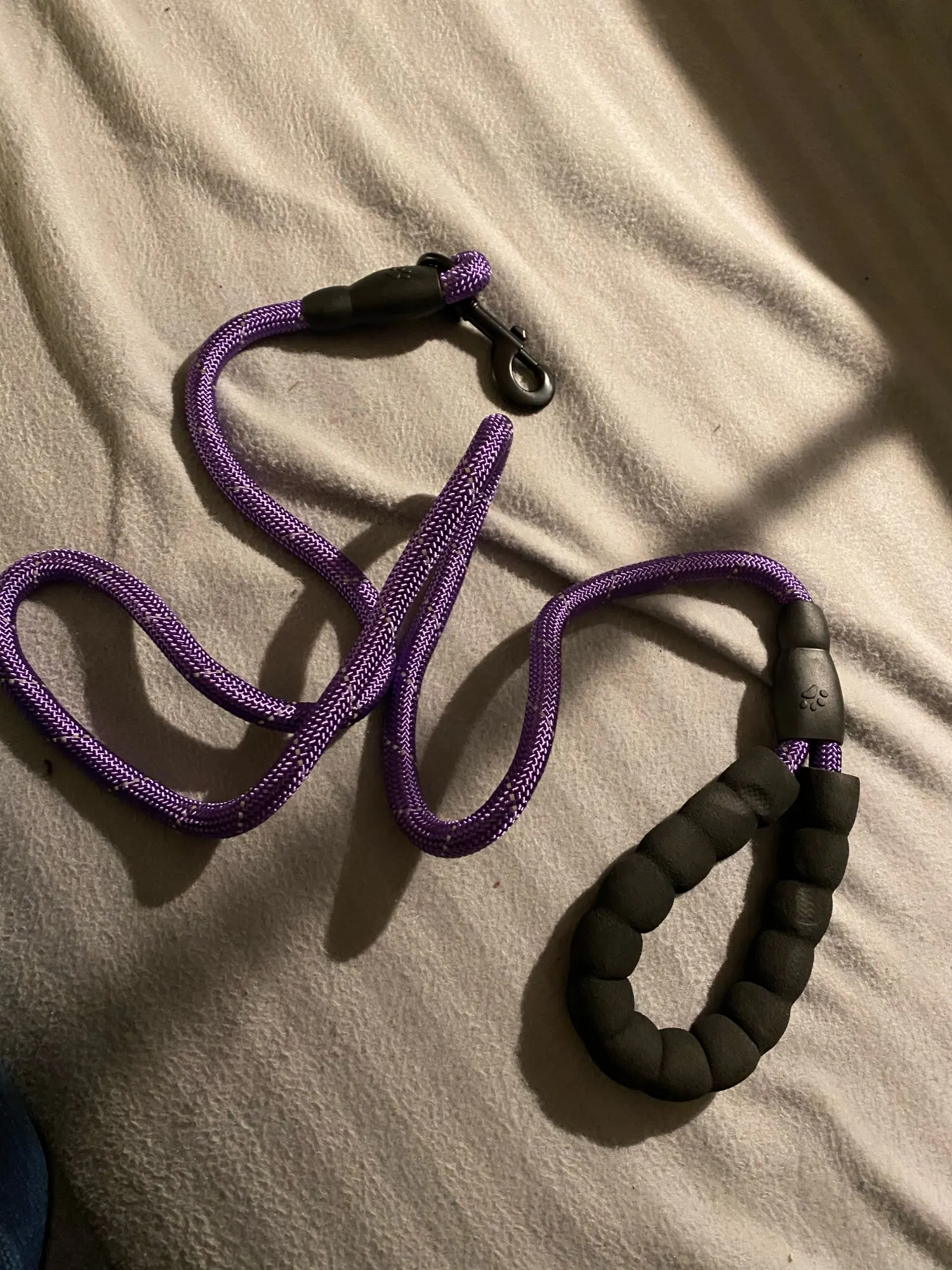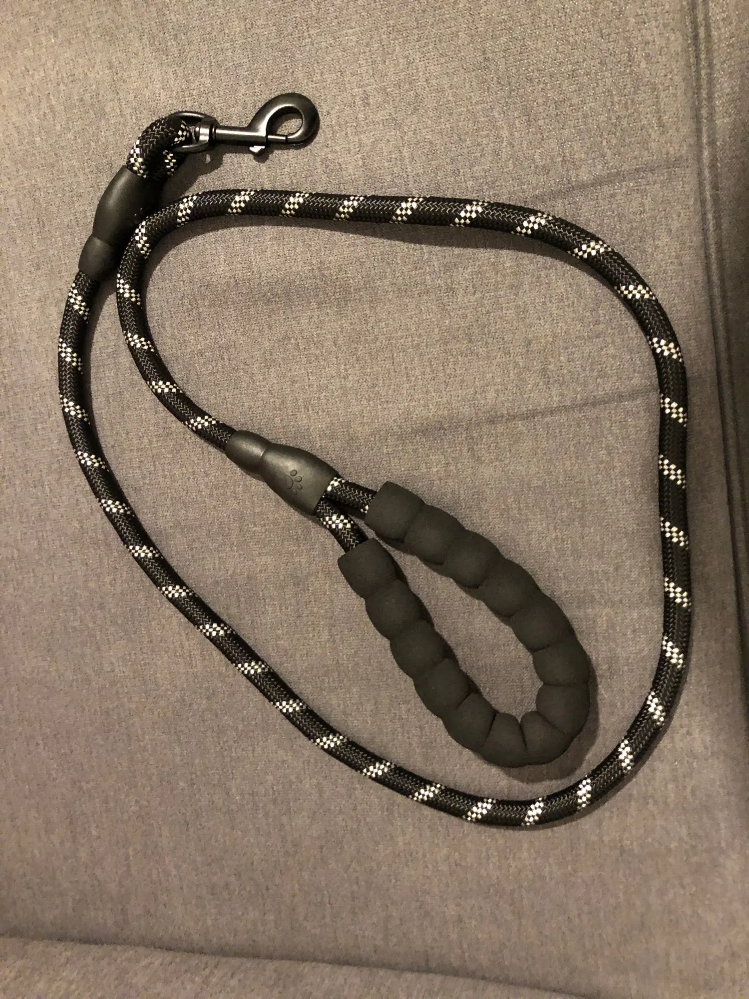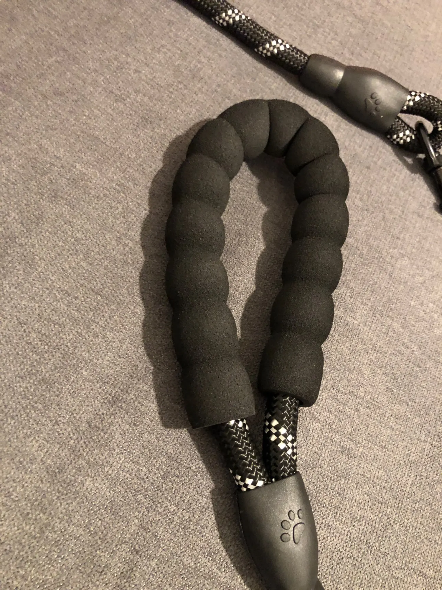 Идеальная длина! (Мы не можем отрегулировать длину) Исключительная ручка! Даже если это холодно, это круто, если собака тянет, это не больно, много комфорта! Будьте осторожны, однако, резиновые вещи на концах не очень хорошо держатся (теплая точка клея, и мы говорим больше) это отражает в темноте, когда есть автомобили, так что хорошо для безопасности