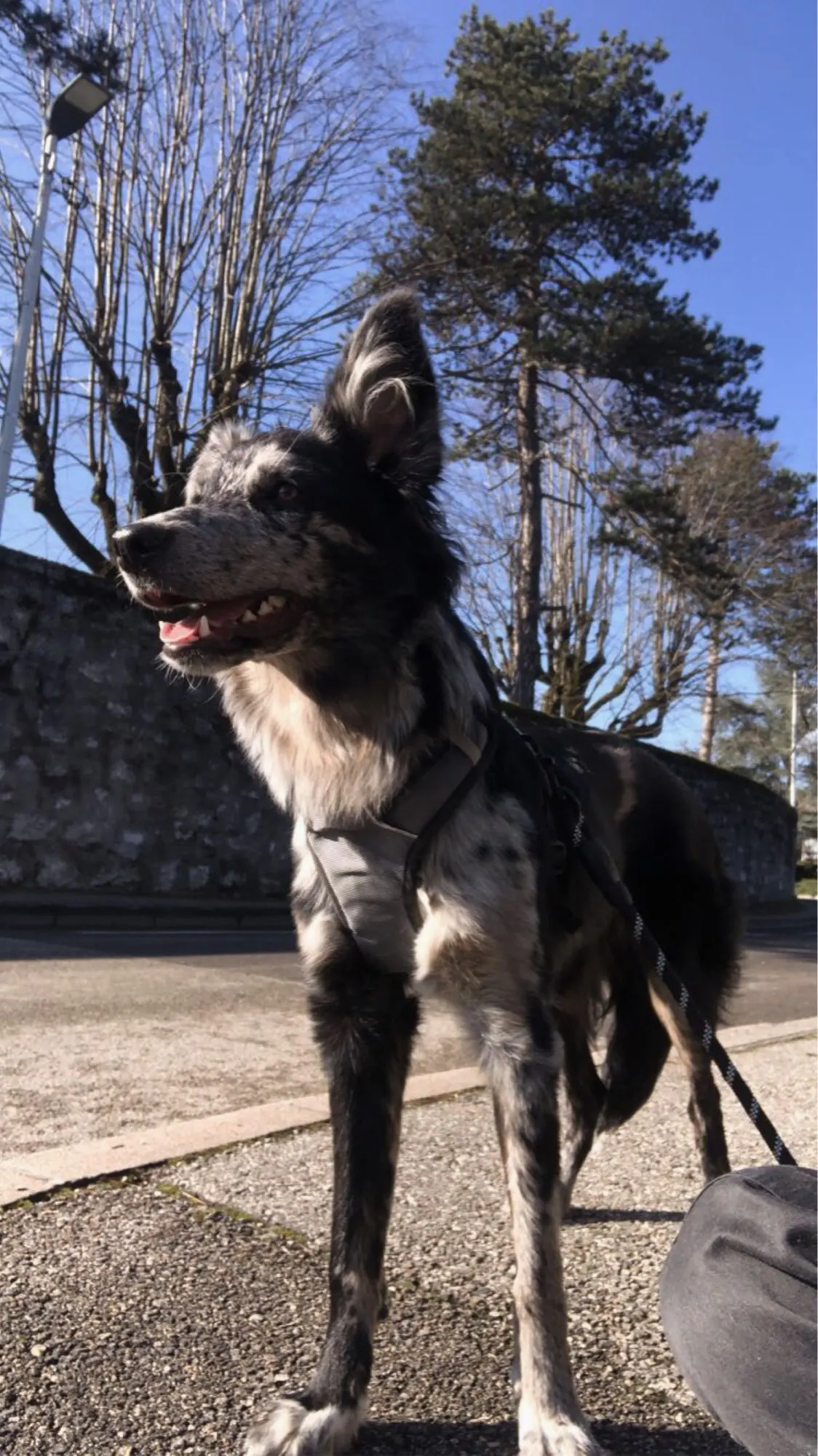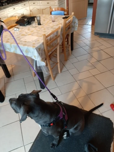 mijn roemeentje heel blij tuig en riem het zelfde .weer een meter langer na adoptie