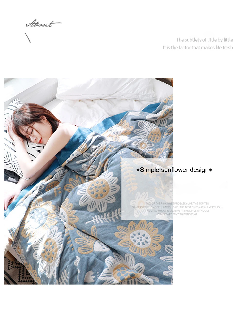 Японское летнее одеяло, тонкое Хлопковое одеяло с 5 слоями марли, п...