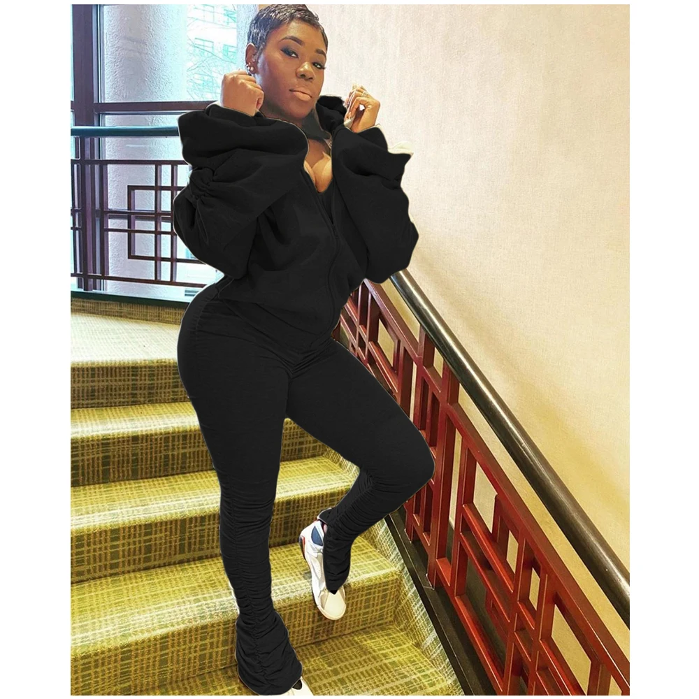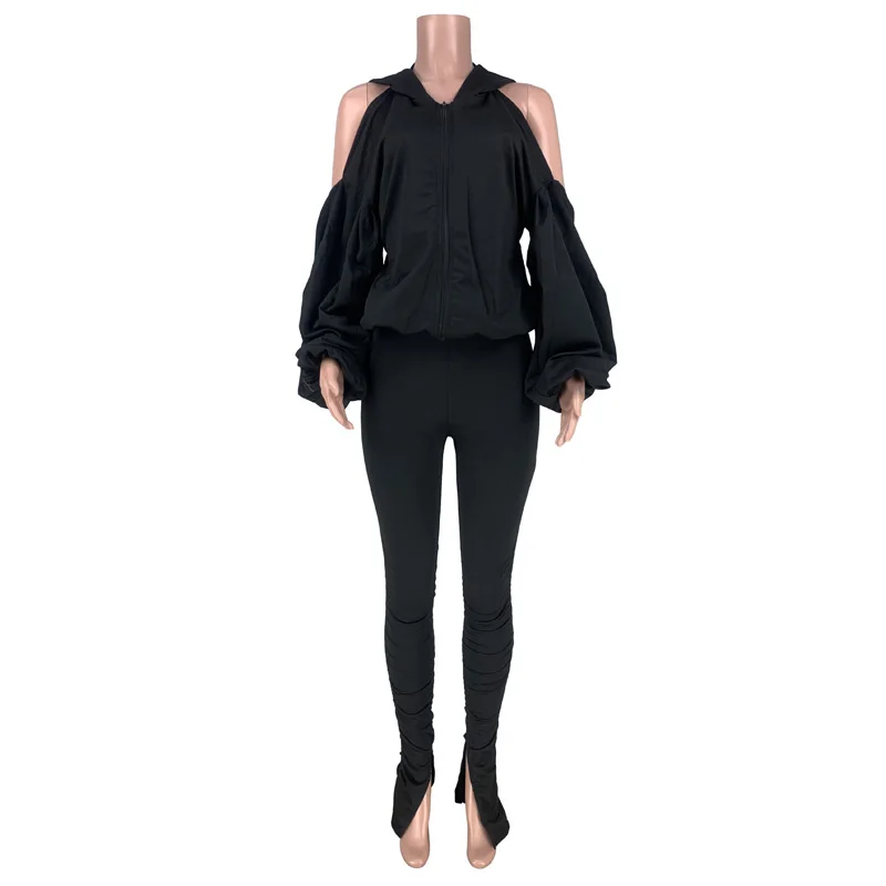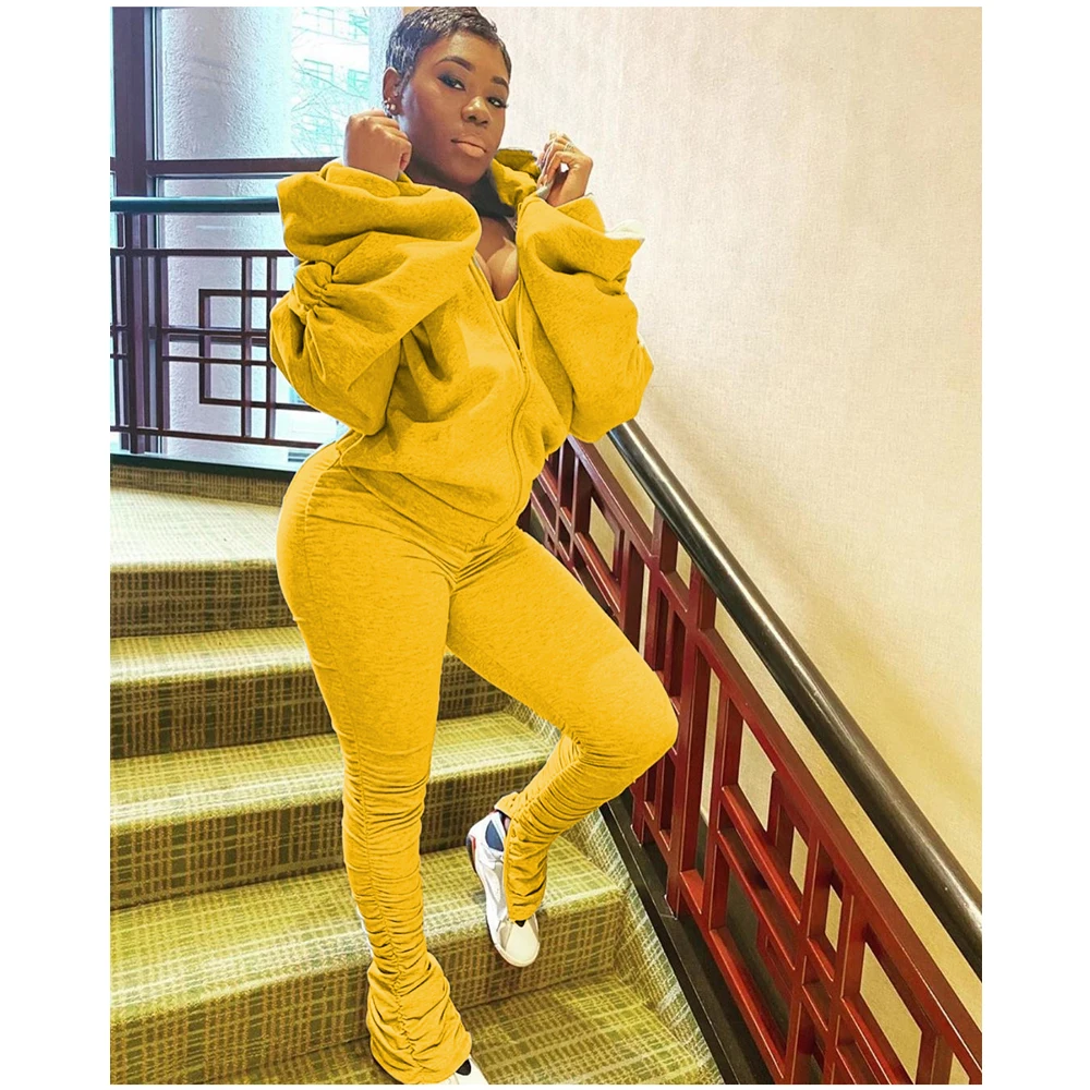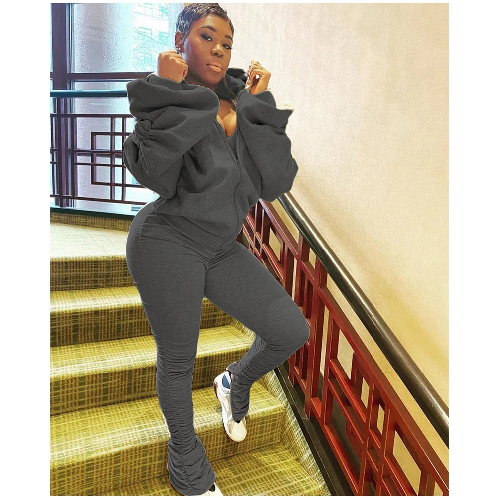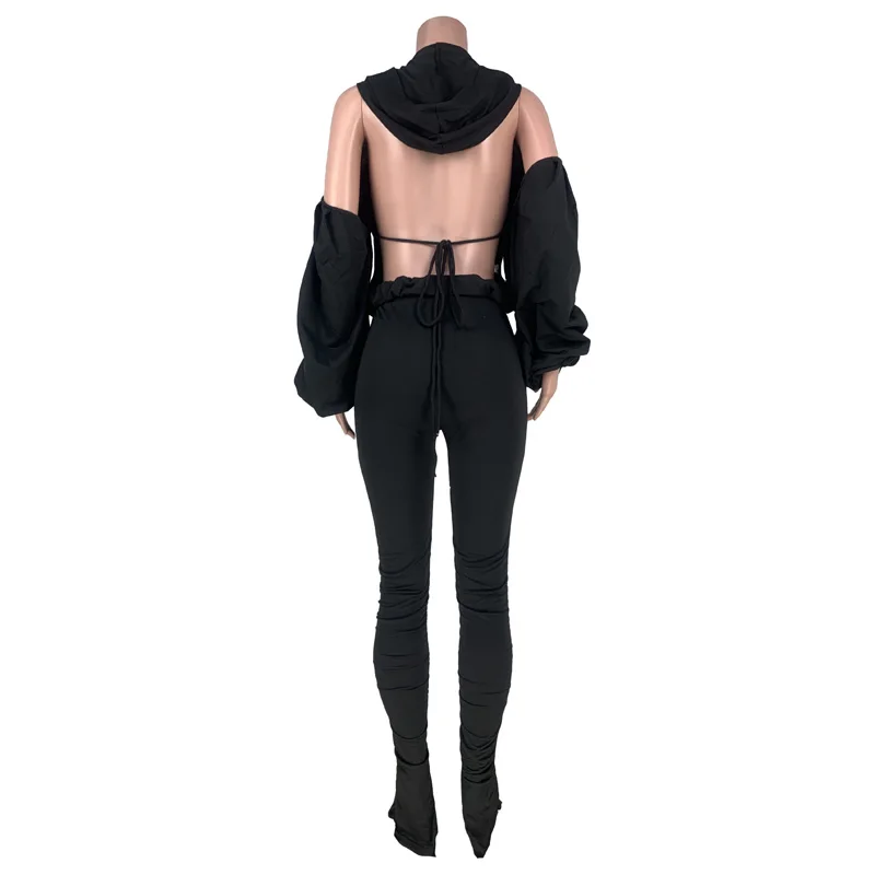 Женский пуловер с капюшоном и рукавами-фонариками 2020, костюм со штанами, толстовка с капюшоном и открытой спиной, топ и брюки, комплект из двух предметов, спортивный костюм