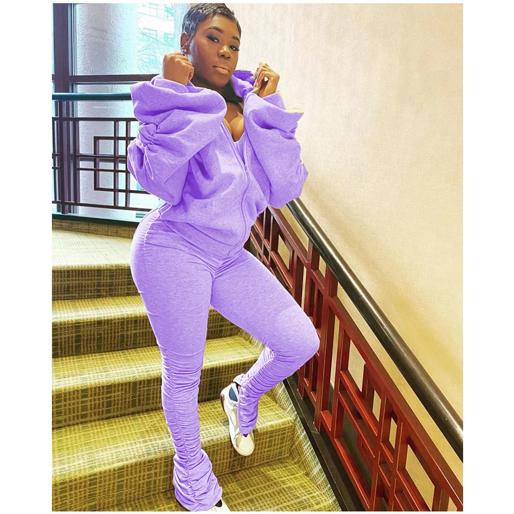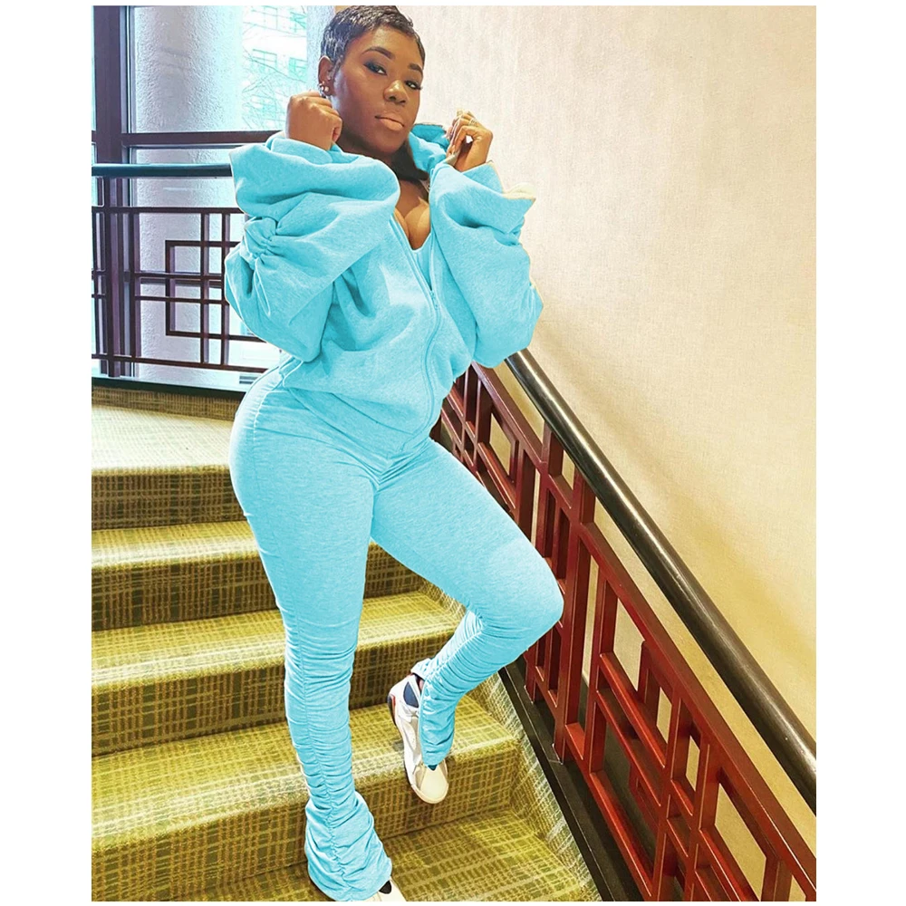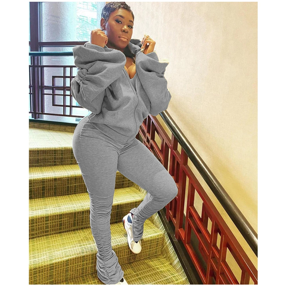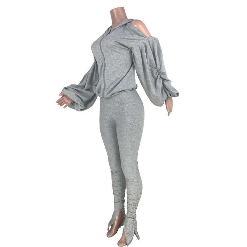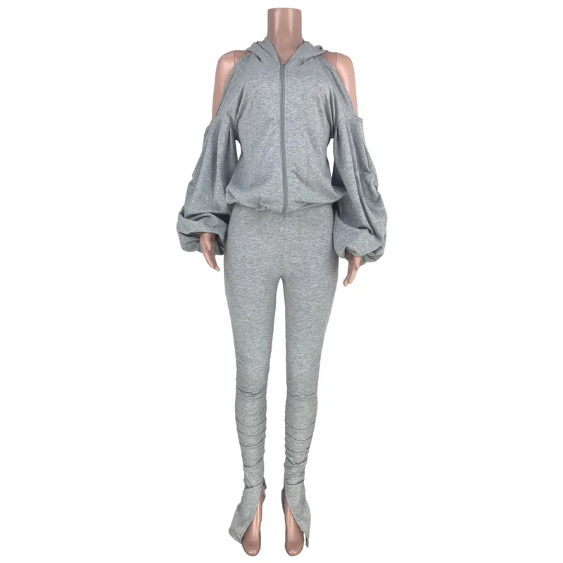 Женский пуловер с капюшоном и рукавами-фонариками 2020, костюм со штанами, толстовка с капюшоном и открытой спиной, топ и брюки, комплект из двух предметов, спортивный костюм