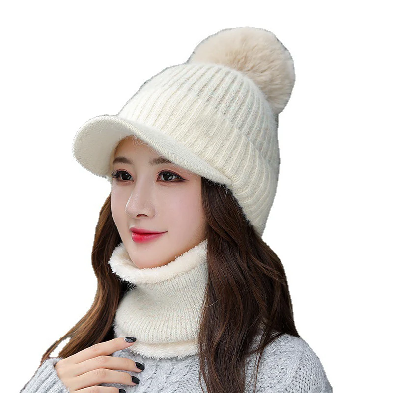 Брендовые зимние вязаные шапки-бини, шапки, Женская плотная теплая шапка с защитой ушей, женская вязаная шапка с жемчугом, Шапка-бини, Комплекты шарфов для верховой езды